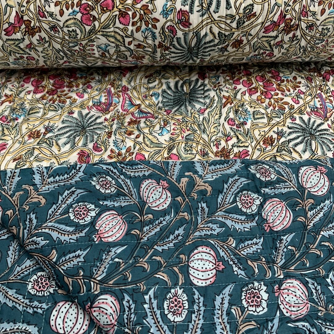 Prachtige quilted indian cotton, geschikt voor het maken van jassen, gilets, kussens of accessoires met katoenen tussenvulling!