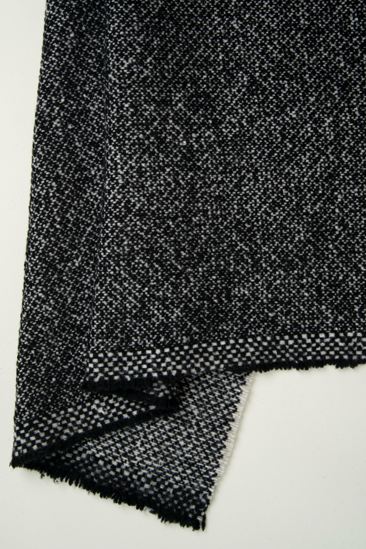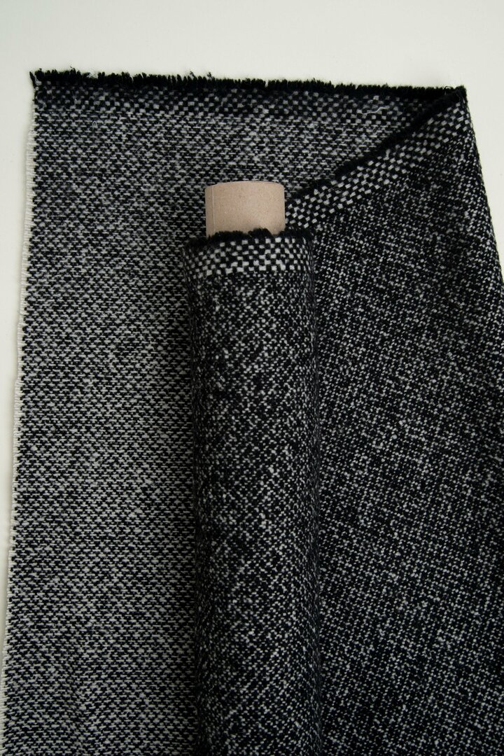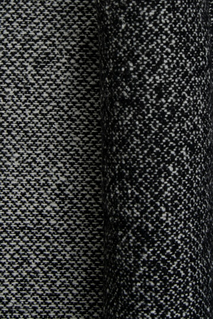Deze zwart witte wol heeft in de weefstructuur een mooie onregematigheid en een levendig effect.Â