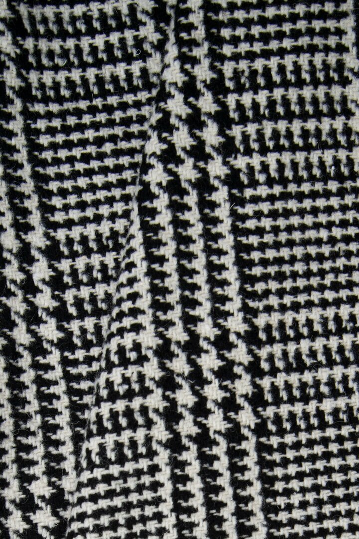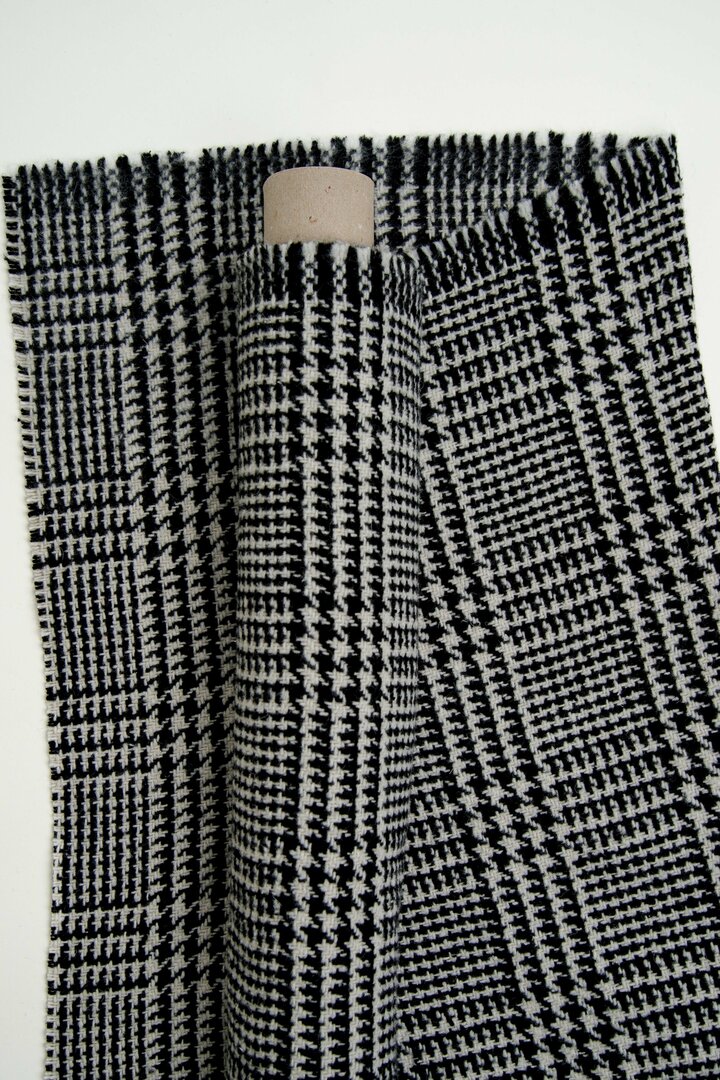 Met zijn verfijnde weefstructuur en zwart-witcontrasten blijft de Prince of Wales-stof een tijdloze must-have in de wintergarderobe. Deze wollen stof, dicht en soepel tegelijk, is perfect voor het maken van jassen, blazers en broeken. De grafische regelmaat geeft de stof een elegante, stedelijke uitstraling die de tand des tijds doorstaat en nooit uit de mode raakt.