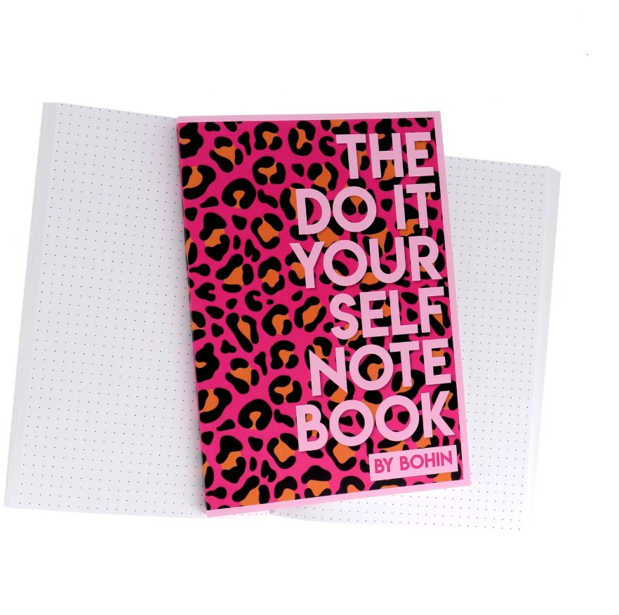 Schets, schrijf, plan en droom vrijuit met dit A5 DIY-notitieboek – perfect voor al je creatieve ideeën en projecten. Elk notitieboek heeft 96 pagina's met stippen (5 mm regelafstand), ideaal voor aantekeningen, tekenen, mindmapping of bullet journaling. Deze levendige omslagen zijn ontworpen voor makers en creatievelingen en zijn geïnspireerd op de iconische collecties van BOHIN. Deze softcover notitieboeken, gedrukt in Normandië (Frankrijk), combineren stijl, functionaliteit en hoogwaardig papier. De onmisbare metgezel voor elke creatieve werkplek of inspiratie onderweg! Formaat: A5 (14,8 x 21 cm) Pagina's: 96 Binnenpagina's: wit gestippeld raster (5 mm regelafstand) Full-colour softcover Gemaakt in Frankrijk (gedrukt in Normandië) Binding: perfect gebonden Ontwerp: Zebra