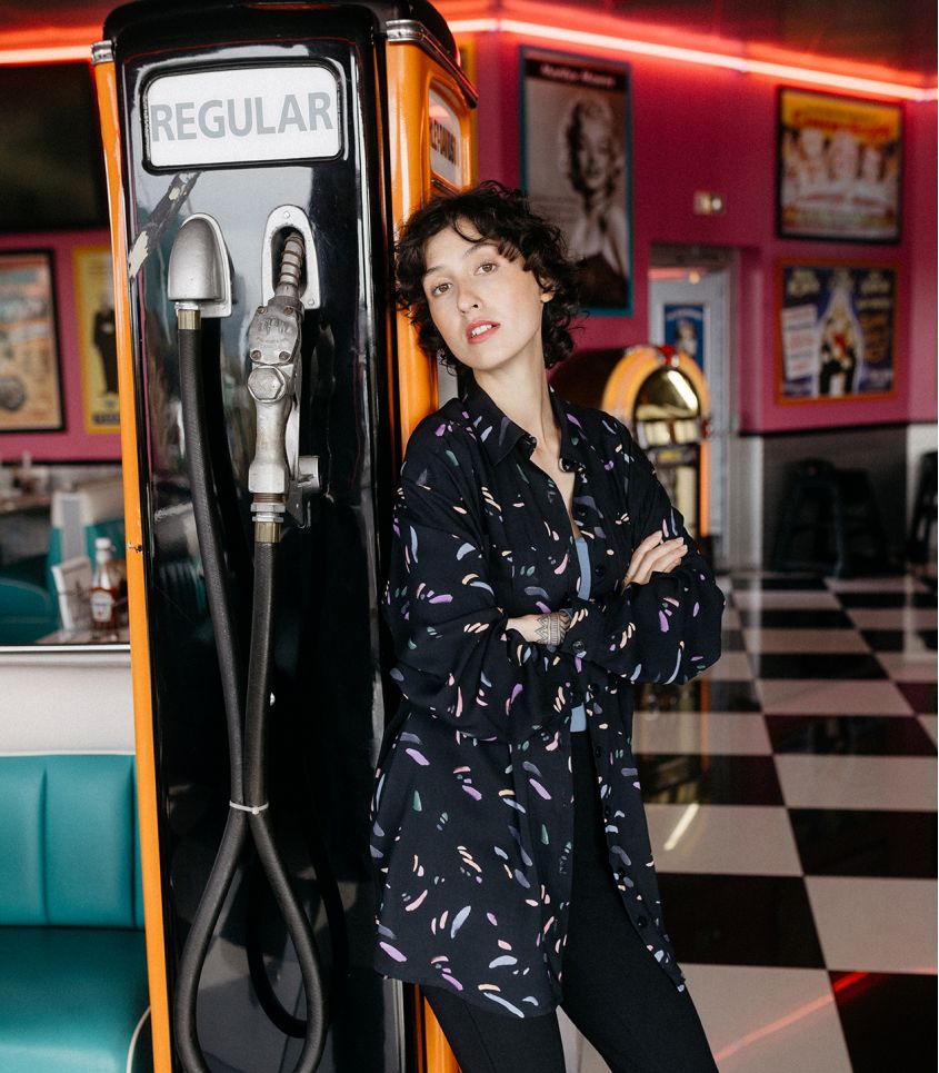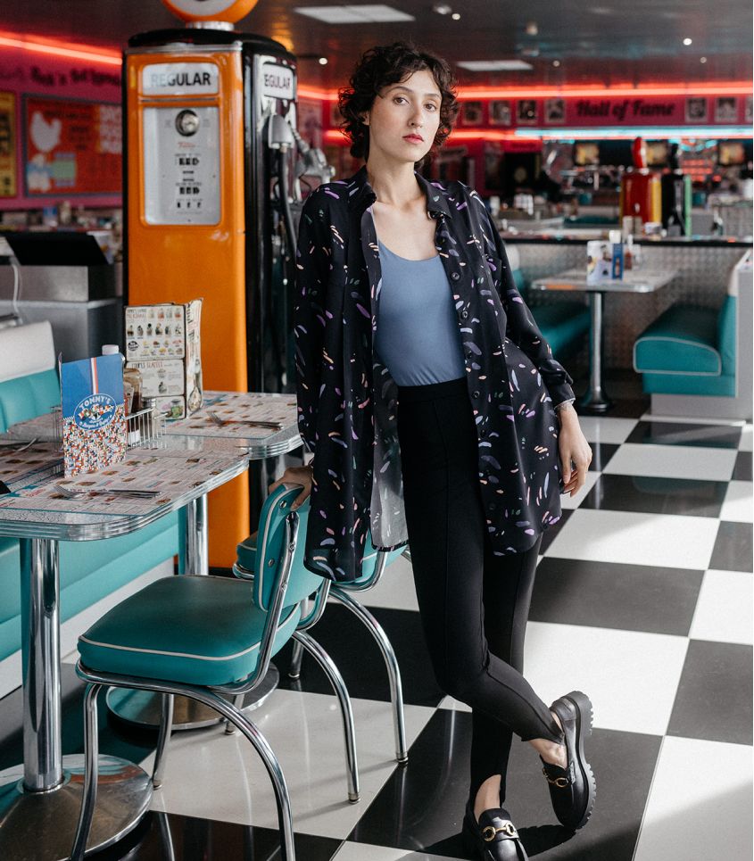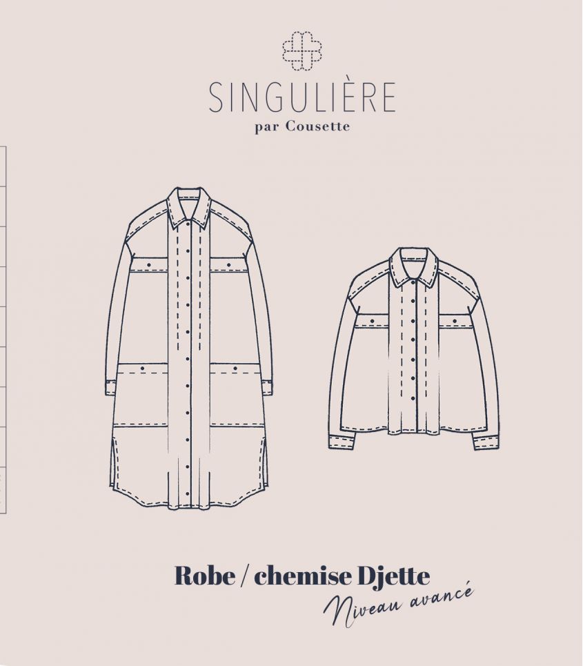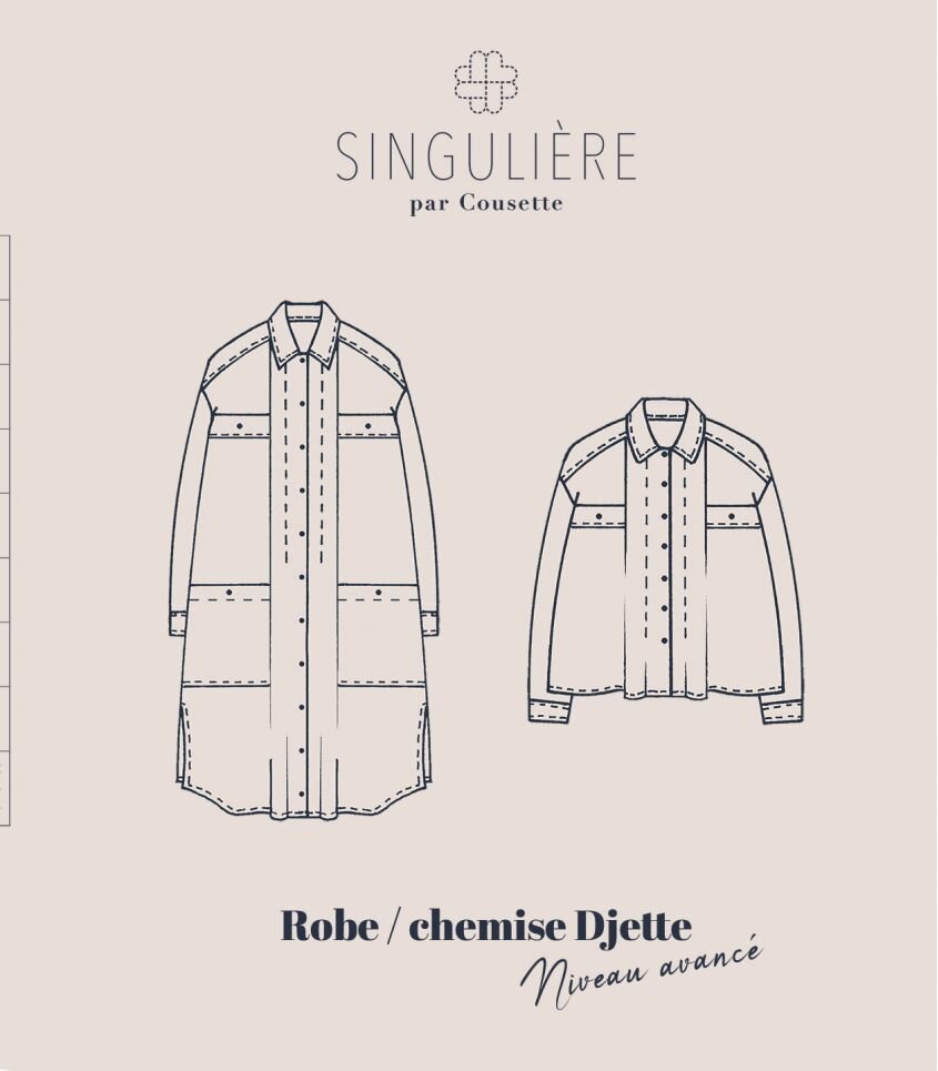 Cousette - Crumpette Blouse/Dress - papier patroon Djette is an oversized shirt with dropped shoulders and wide armholes. Wide pleats on either side of the button placket as well as faux chest pockets and patch pockets (for the dress) accentuate the 80s - 90s look. The finish of the cuffs is both simple and original: a set of pleats and a hidden slit in the hollow. The bottom is slightly rounded and side slits finish the dress and the shirt. Djette is also available as a shirt for a spring version.