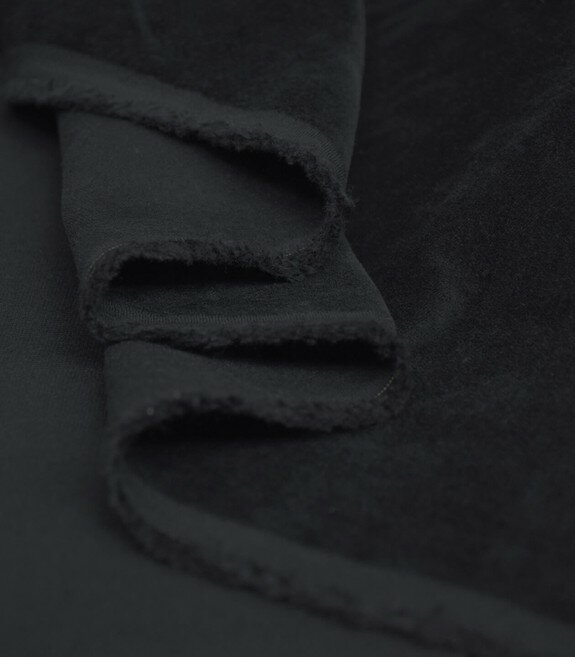 Nuit Noire is de stof van elegante betoveringen. Een diep, intens zwart fluweel met zacht licht en een gestructureerde vals.
