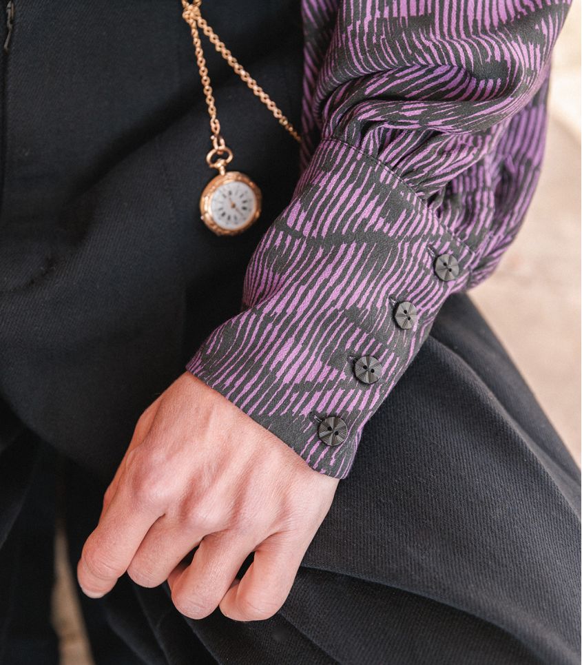 Cousette - Violette Blouse Dress - papier patroon De pofmouwen zijn verkrijgbaar in drie afwerkingen naar keuze: elegante brede manchetten, strakke mouwbanden of romantische ruches. De halslijn biedt ook verschillende variaties: een opstaande kraag gesloten met lusjes en knopen, een klassieke overhemdkraag of een verfijnde lavallière. Een vrouwelijk en veelzijdig model, ontworpen om het meest waardevolle stuk in de Singulière-garderobe te worden.