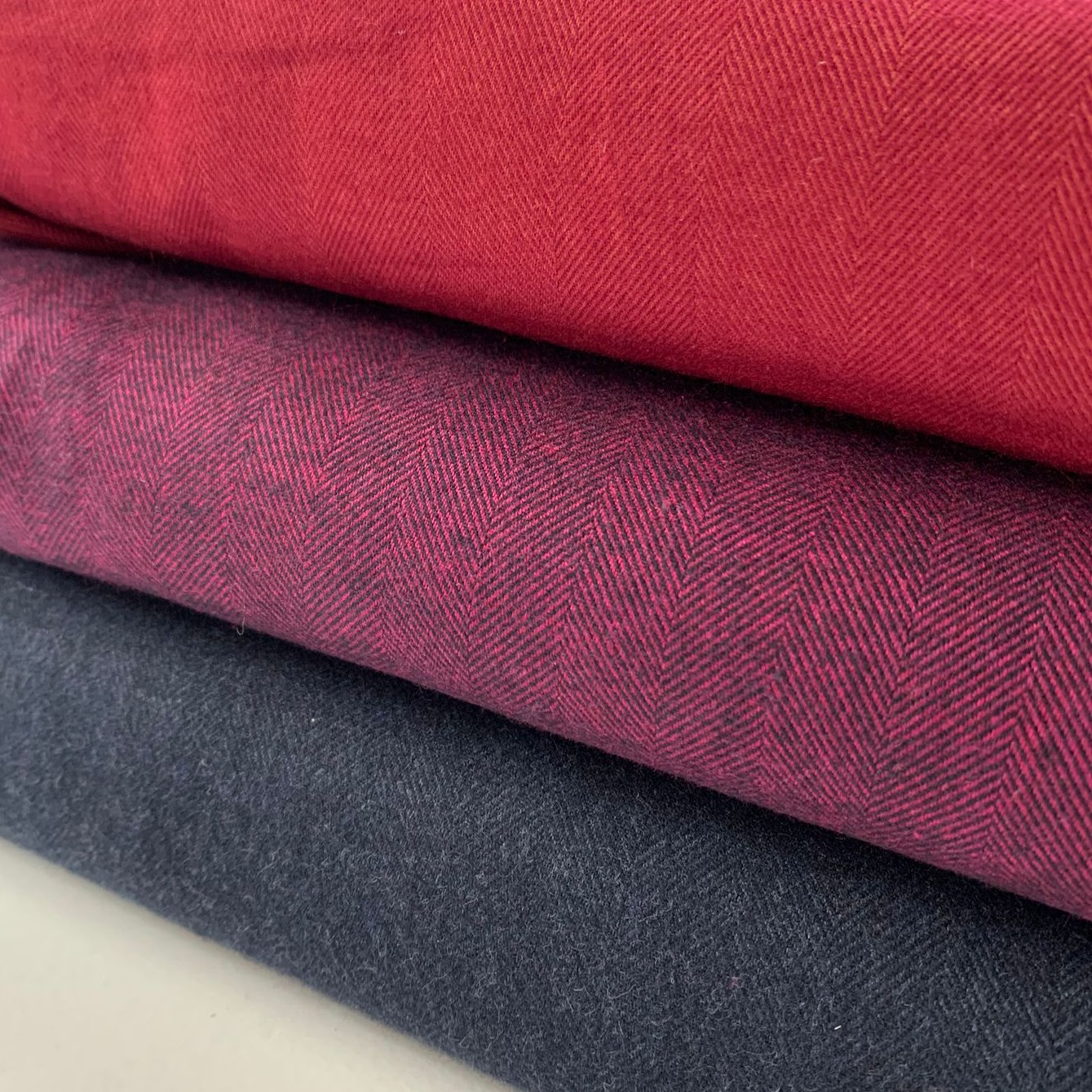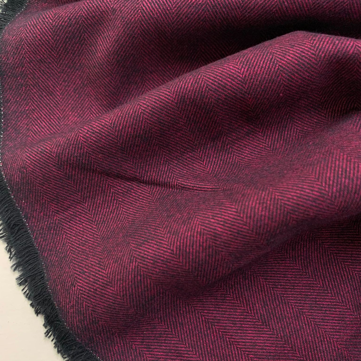 Een prachtige visgraad weving in een warme auberginekleur met een flanelachtige look