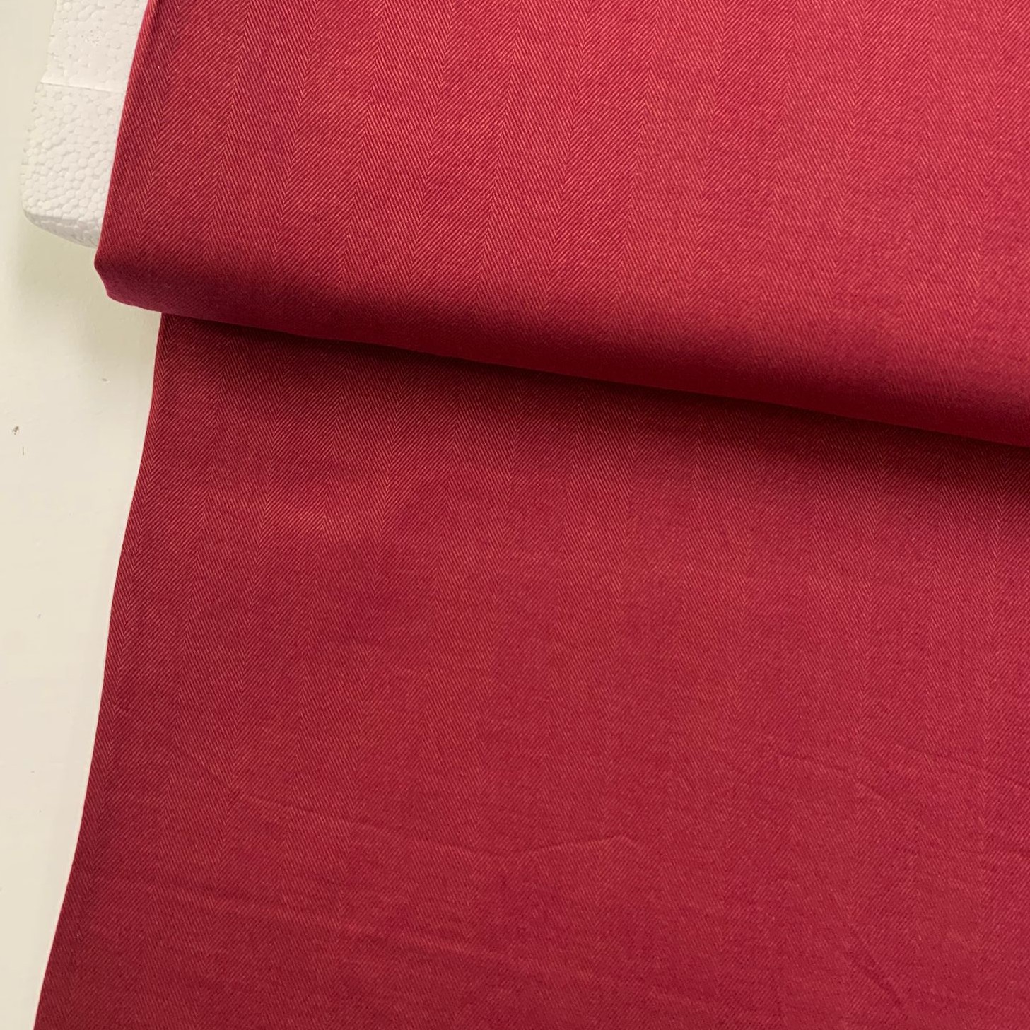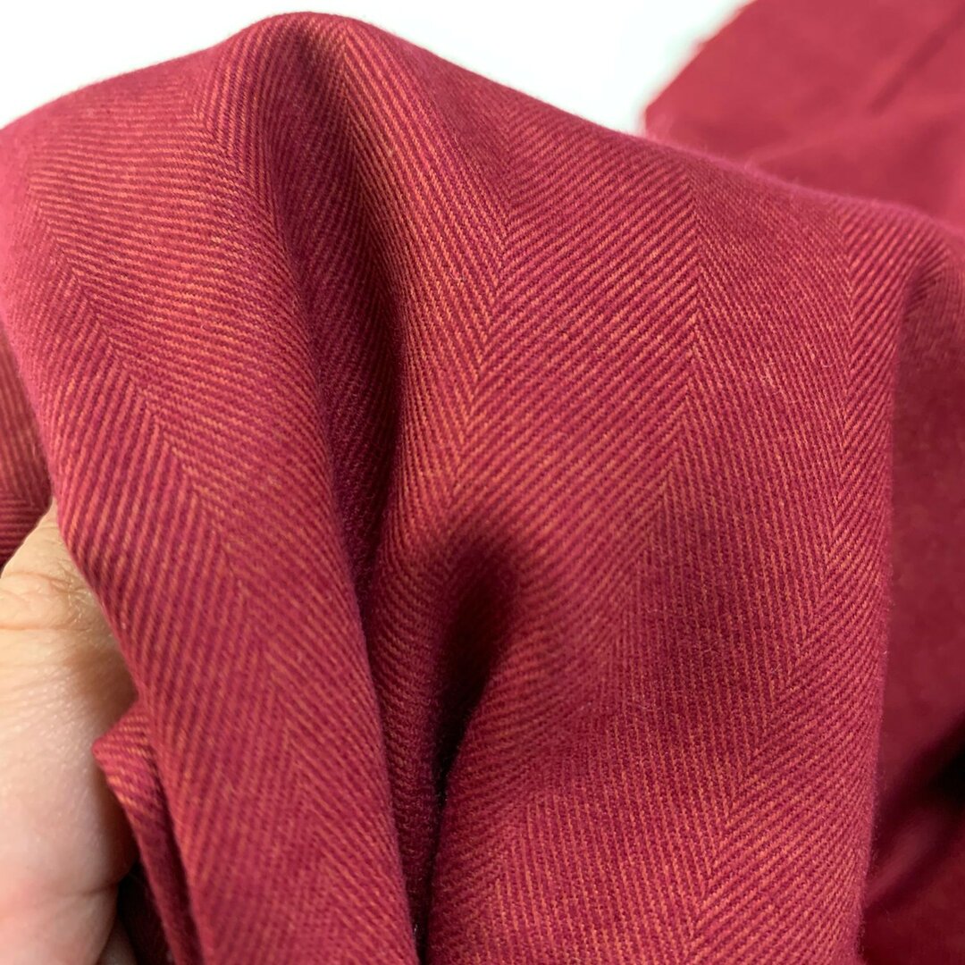 DEADSTOCK Herringbone Warm Red COTTON Een prachtige visgraad weving in een warm rode kleur met een flanelachtige look. Geschikt voor het maken van broeken, jasjes, blouses of een mooie rok. De stof voelt heerlijk zacht aan! Deadstock uit Italië Deadstock stoffen zijn left-overs van leveranciers en designers. Door deze stoffen in te kopen, voorkomen we dat ze weggegooid worden. Deze stoffen zijn limited edition en zijn dus niet meer bij te bestellen. Zie je iets moois? Tijd om te bestellen! Dan weet je zeker dat het van jou is.