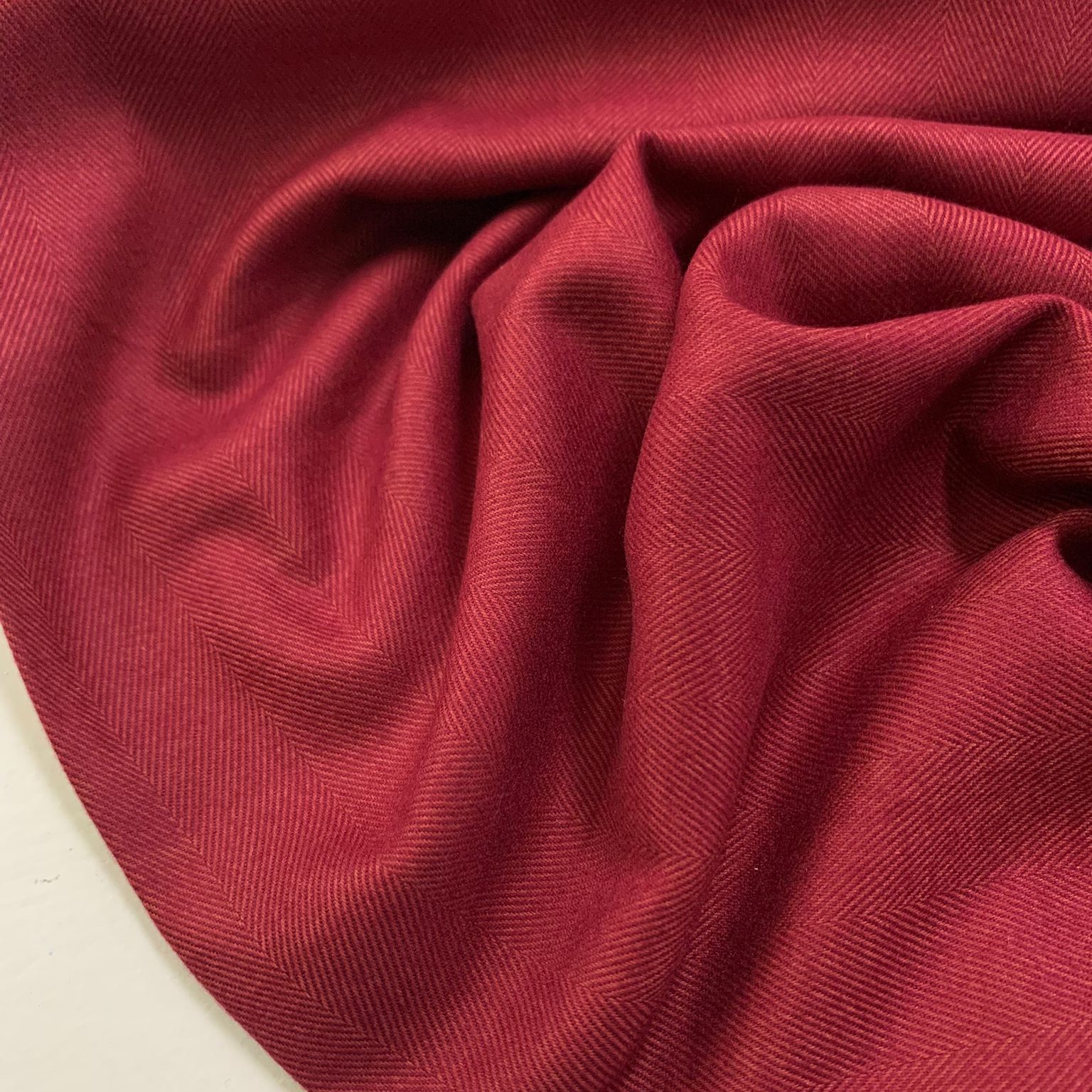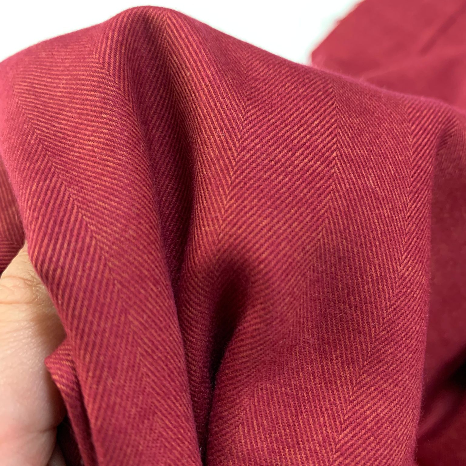 Een prachtige visgraad weving in een warm rode kleur met een flanelachtige look