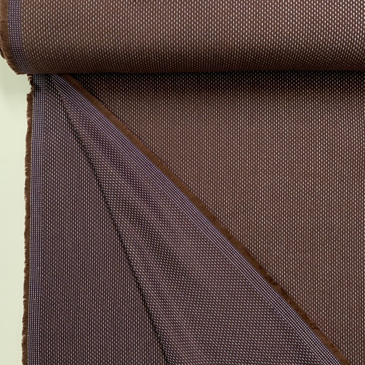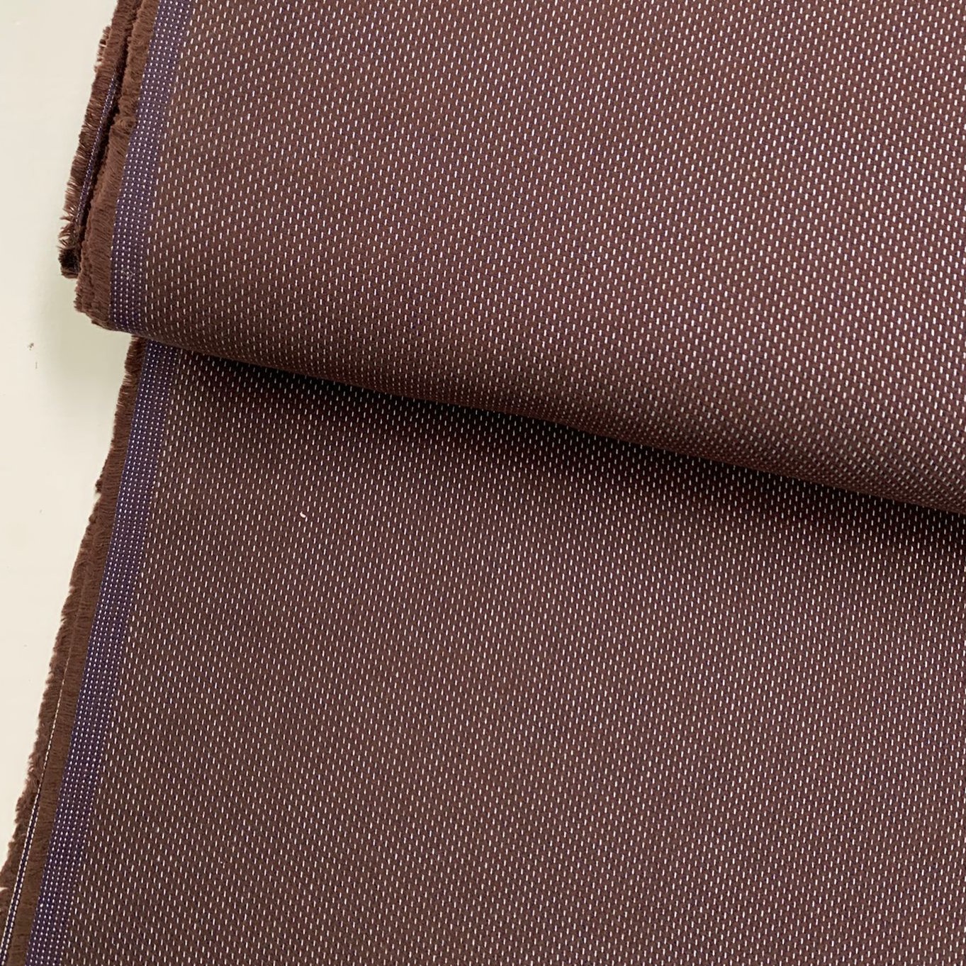 Donkerbruine katoen met hele fijne licht blauwe ingeweven steekjes