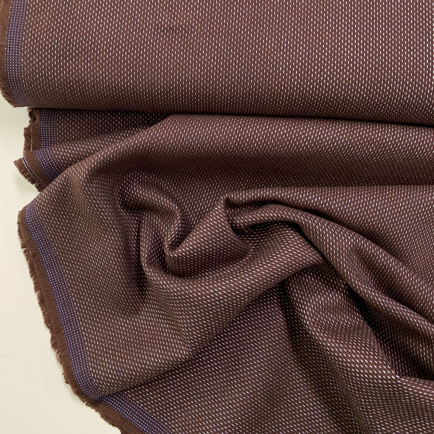 DEADSTOCK Subtle Stitches Blue COTTON Donkerbruine katoen met hele fijne licht blauwe ingeweven steekjes. Deadstock uit Italië Deadstock stoffen zijn left-overs van leveranciers en designers. Door deze stoffen in te kopen, voorkomen we dat ze weggegooid worden. Deze stoffen zijn limited edition en zijn dus niet meer bij te bestellen. Zie je iets moois? Tijd om te bestellen! Dan weet je zeker dat het van jou is.
