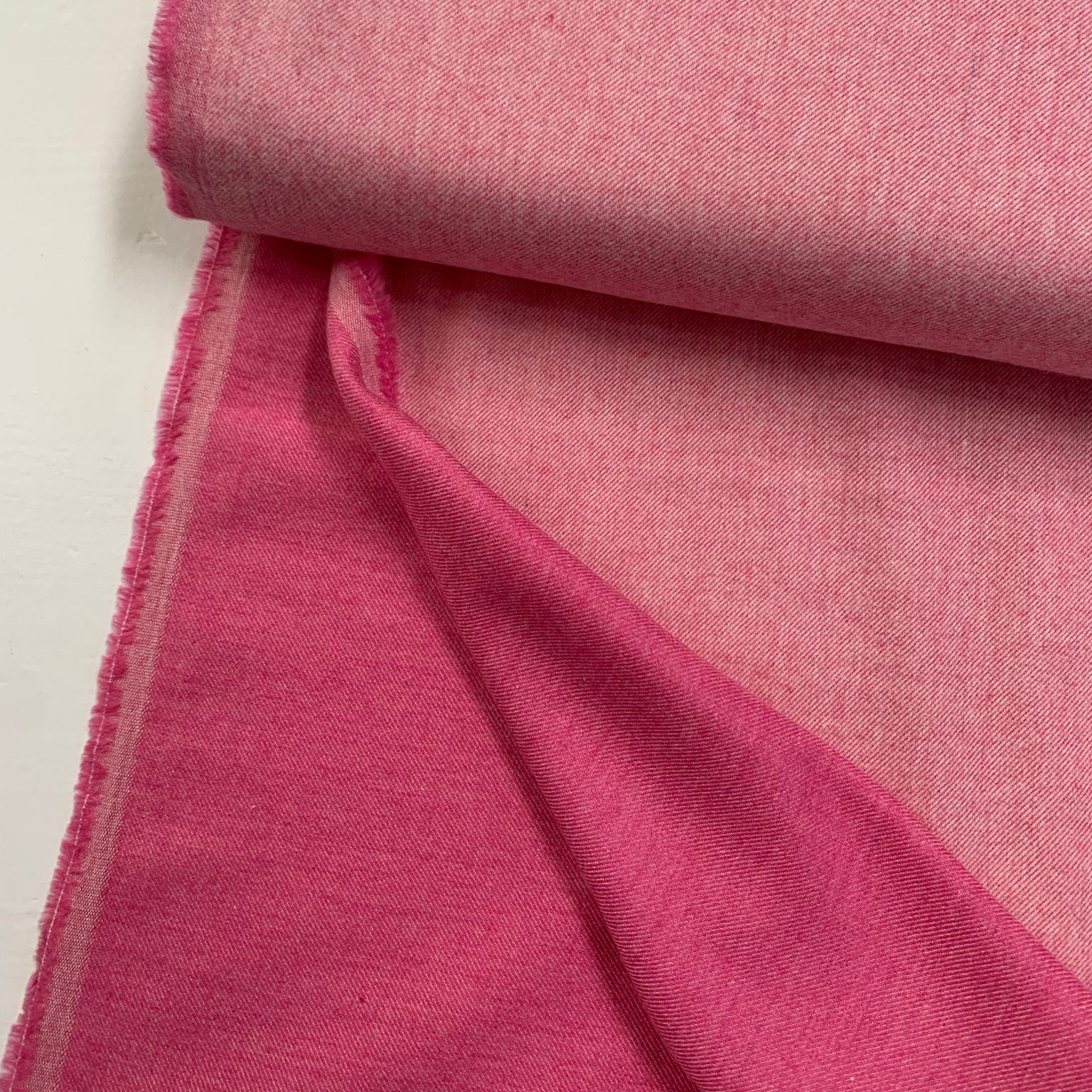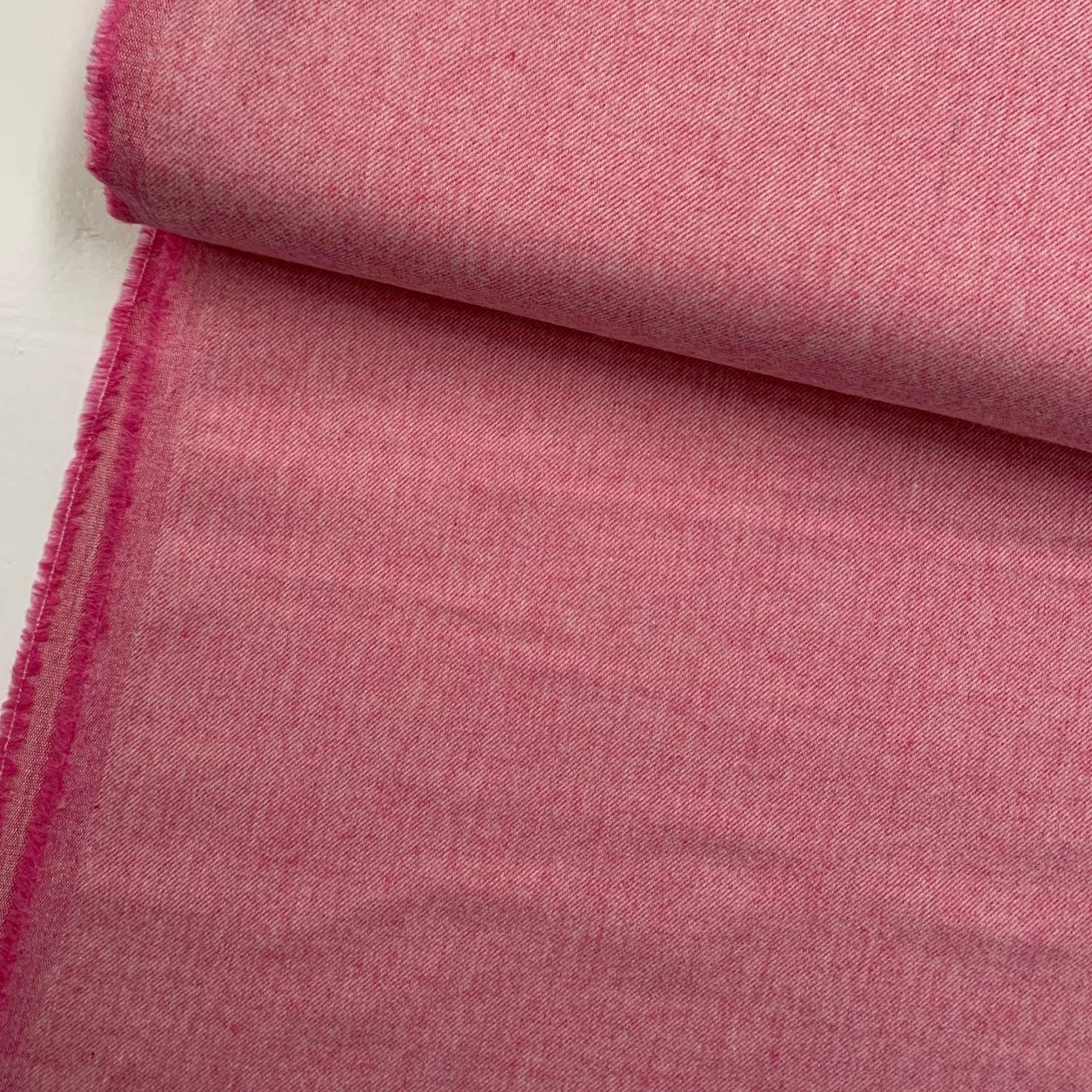 Deze warm roze katoen is geweven in een twill binding en voelt aan als een flanel.