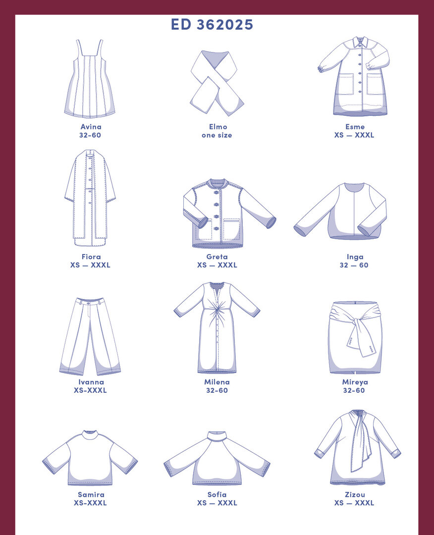 Van Avina’s moderne korset tot Milena’s elegante twist: in Fibre Mood 36 vind je alles om het jaar in stijl te vieren. Warme, winterproof jassen zoals Esme, Fiora en Inga houden je cosy, terwijl Greta, Mireya en Ivanna met bijzondere details en speelse silhouetten je creativiteit prikkelen. Sofia is dé knusse essential op koude dagen, en Samira en Zizou zorgen voor elegante looks op warme, feestelijke momenten. Maak je winteroutfit compleet met de trendy Elmo en je bent helemaal klaar voor een fantastisch eindejaar.