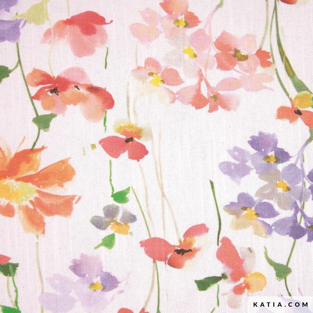 Katia - Multicolor Daisy RECYCLED CANVAS SLUB Deze gerecyclede canvas heeft een levendige print van dansende madeliefjes en een slubeffect - ideaal voor naaiprojecten met een frisse, natuurlijke uitstraling. Perfect voor tassen, cosmeticatassen of handgemaakte decoraties - een veelzijdige keuze die duurzaamheid combineert met bloemencharme. Universele naald, dikte: 100. Bij meerdere lagen stof, verhoog de druk van de persvoet of gebruik een dubbele transportvoet.