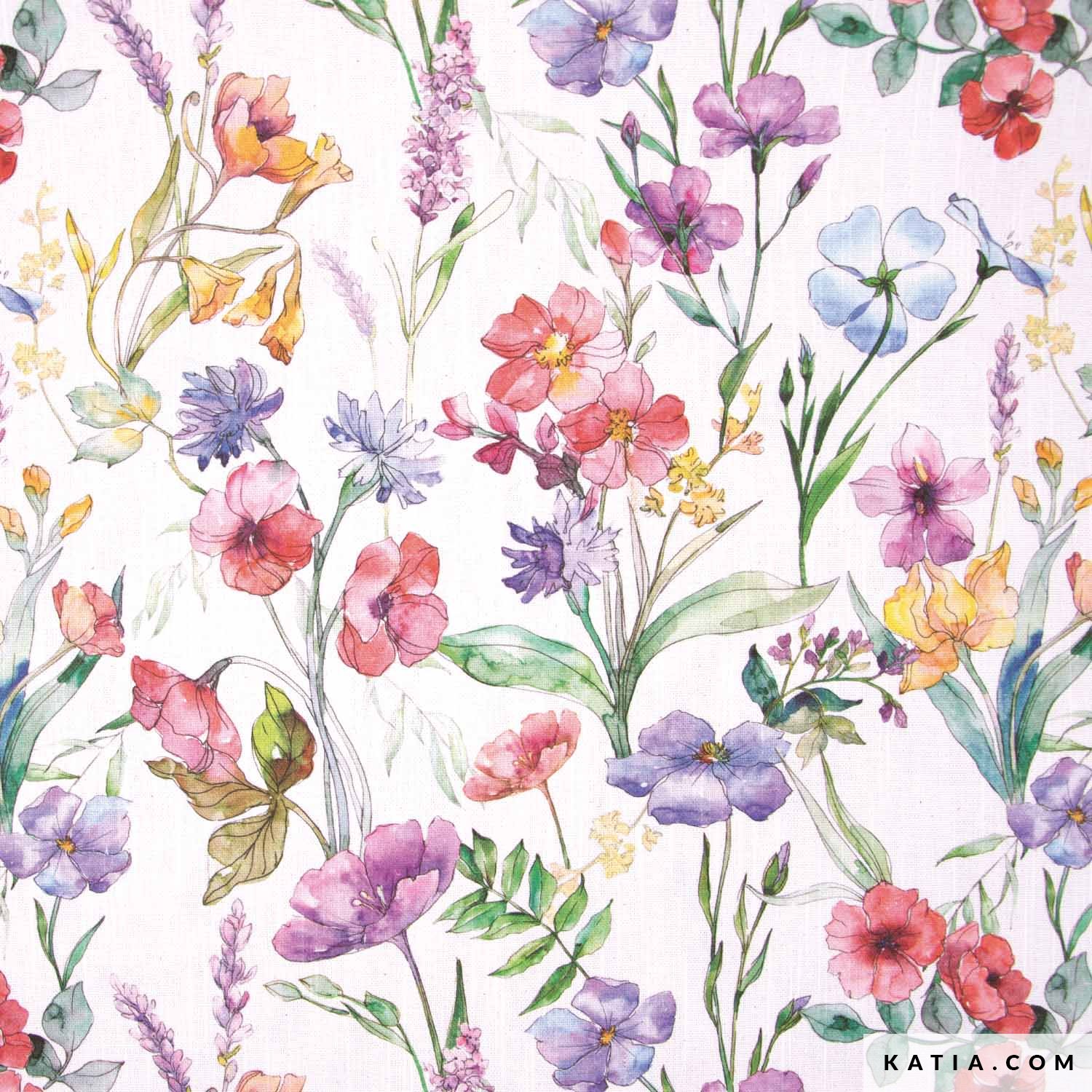 Katia - Multicolor Poppy RECYCLED CANVAS SLUB Geniet van het naaien met deze gerecyclede slub canvas stof met een vrolijke print van klaprozen. De stevige structuur en het bloemmotief maken hem perfect voor tassen, accessoires of woondecoratie. Laat je creativiteit de vrije loop en laat je bij elke steek inspireren door de natuur. Universele naald, dikte: 100. Bij meerdere lagen stof, verhoog de druk van de persvoet of gebruik een dubbele transportvoet.
