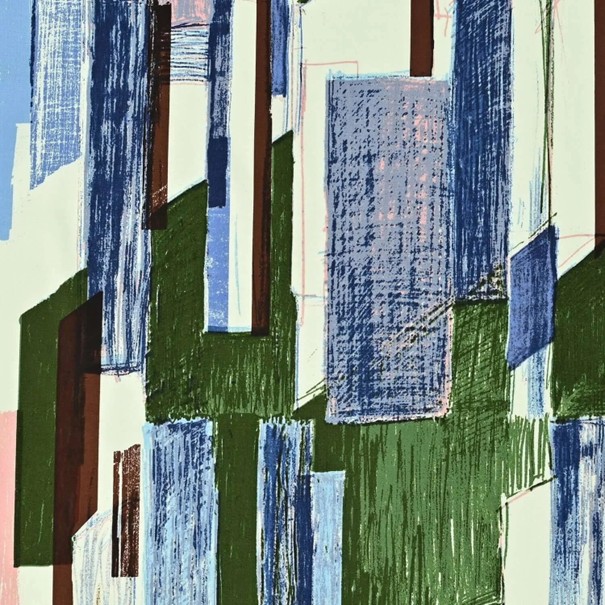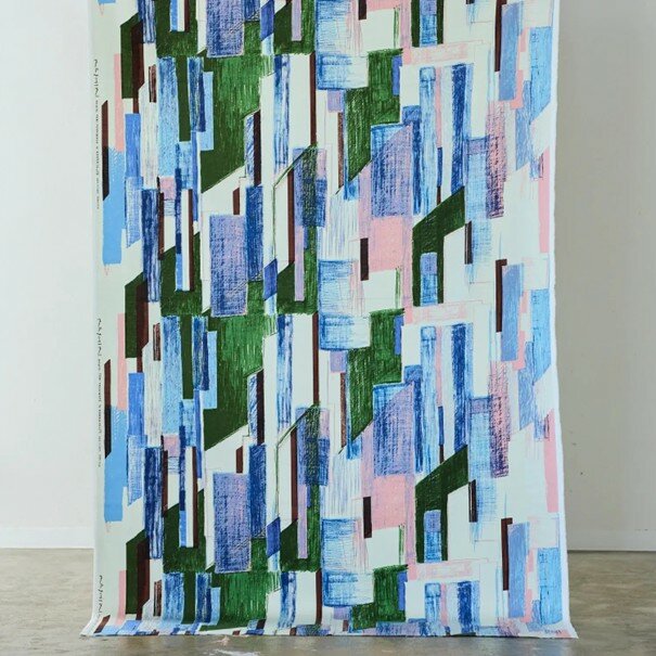 Dit stijlvolle textielmerk is geïnspireerd op alledaagse landschappen zoals de lucht, bergen en steden, opgebouwd uit vrij getekende lijnen die in patronen zijn verwerkt.