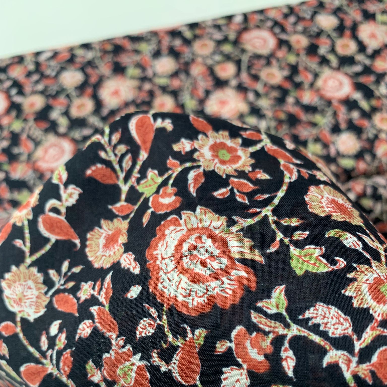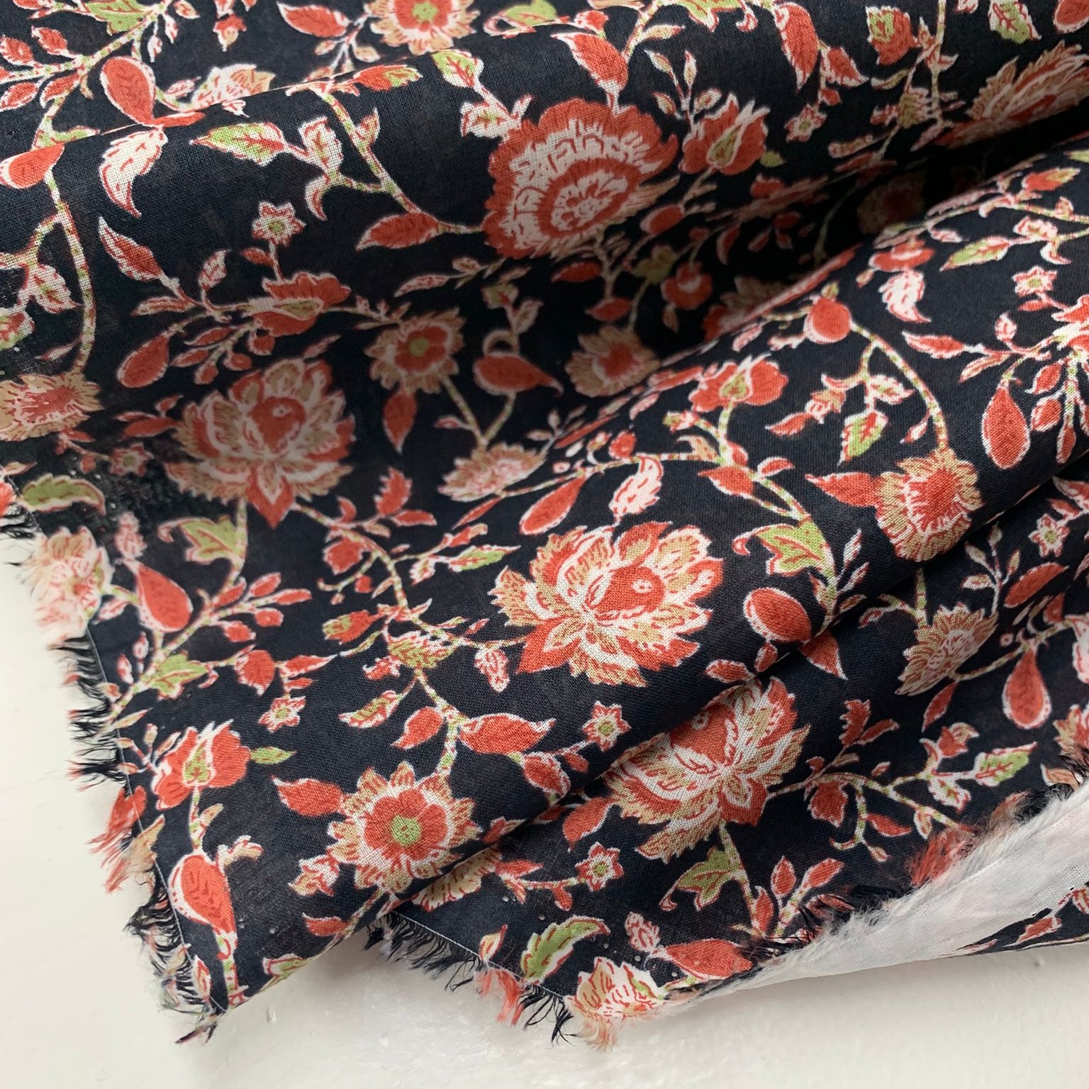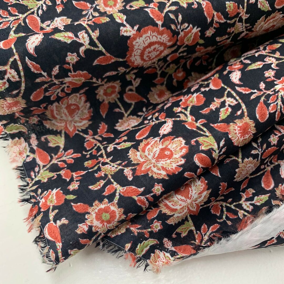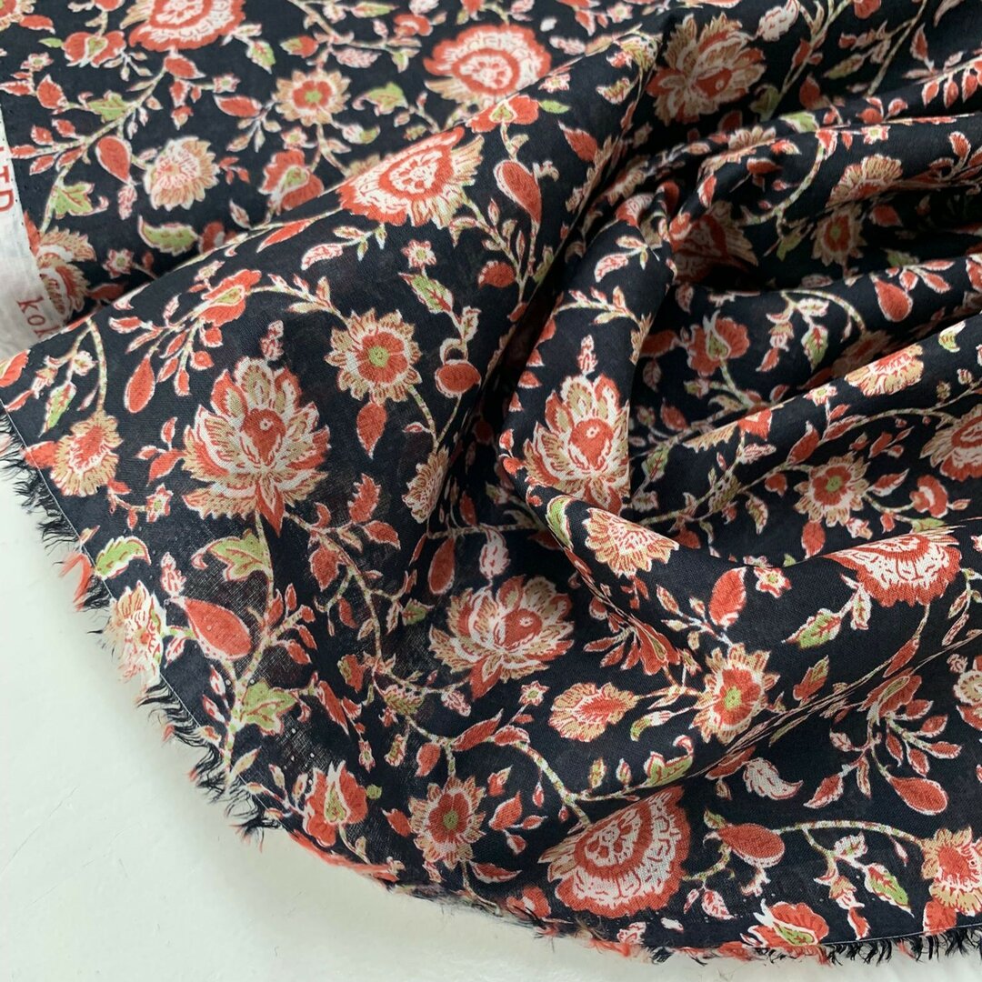 Kokka Japan - Flowers Black Cider - INDIAN COTTON VOILE