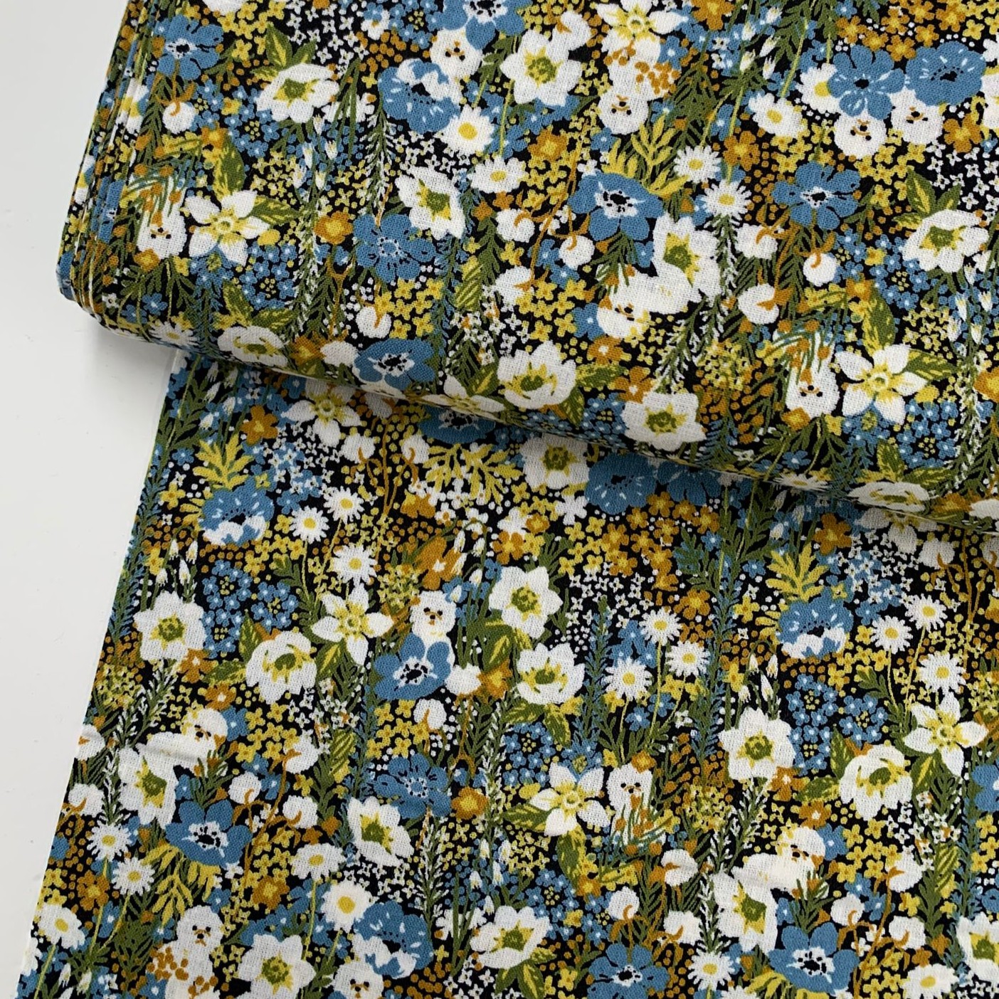 Kokka Japan - Marble Sud BLUE - Flower Bichon - KATOEN LINNEN