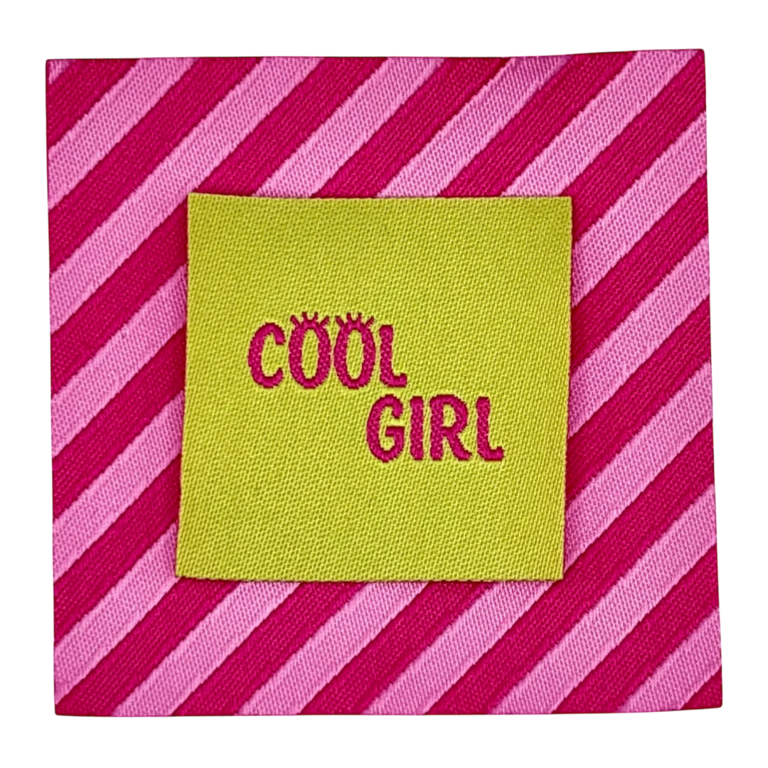 Deze labels zijn per stuk te koop! Deze label is leuk in combinatie met de Schuine Streep Roze label, zie relevante producten. AFMETINGEN: 35x 35mm Material: 100% polyester Do not iron.