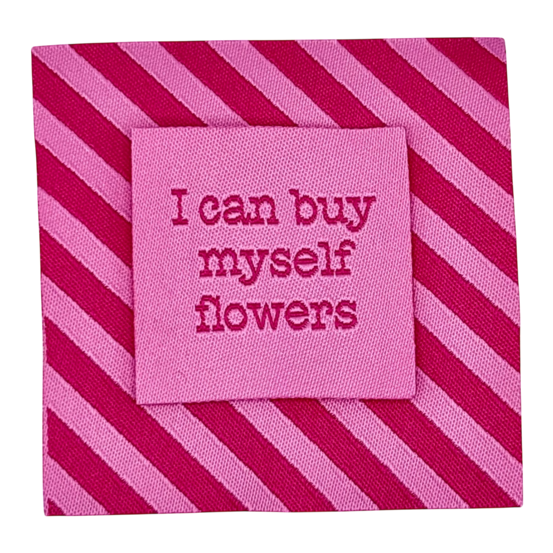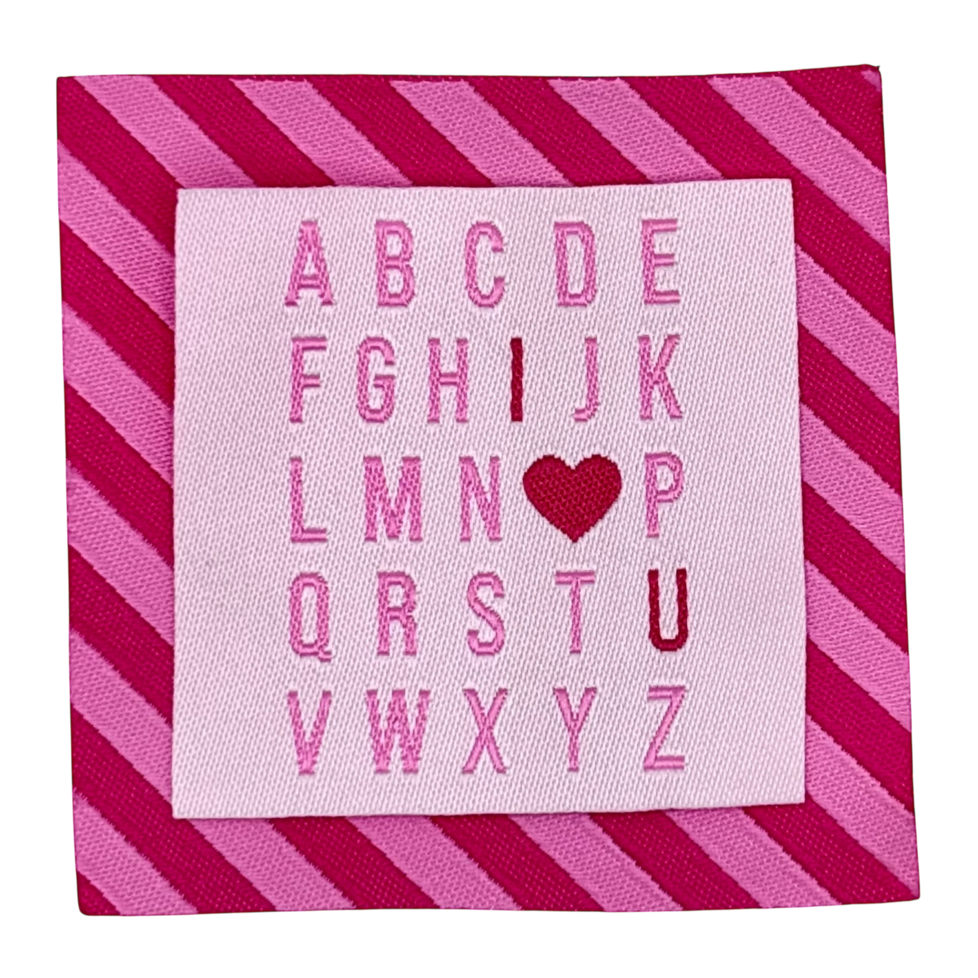 Deze labels zijn per stuk te koop! Let op: het gaat hier alleen om de label met de schuine strepen, de kleinere labels kan je vinde bij relevante producten. Leuk om te combineren! AFMETINGEN: 50x40 mm Material: 100% polyester Do not iron.