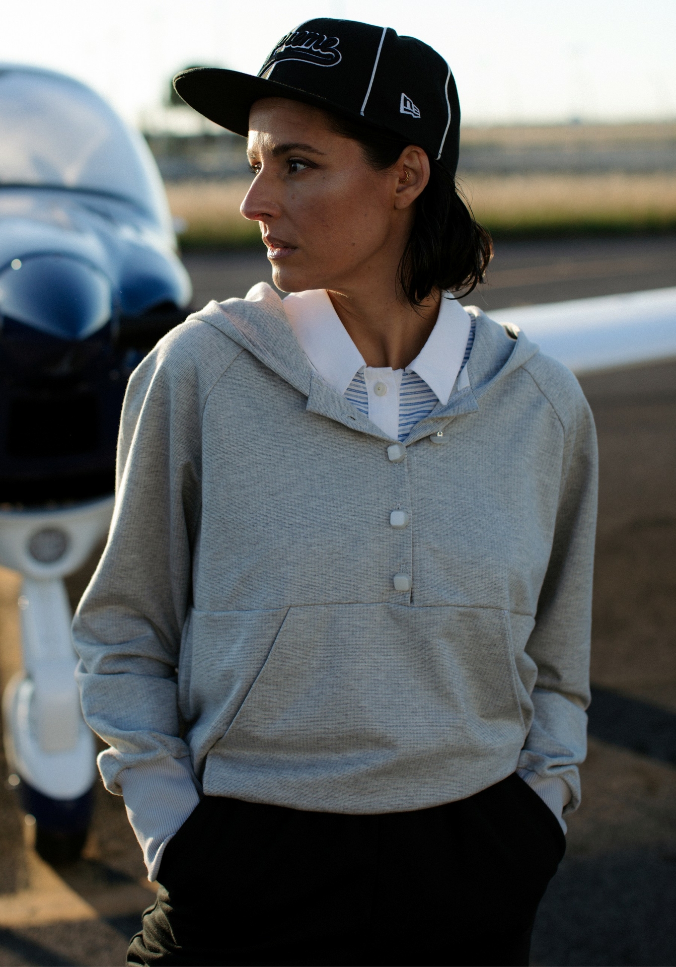 Adèle is the sweatshirt you’ll always want to reach for from your wardrobe – one that you can slip into effortlessly and comfortably. It has been carefully designed. Its oversized cut flatters without overwhelming, with perfectly balanced sleeves. Borrowing from sportswear but elevated with couture-inspired touches that make all the difference : a large comfortable hood with impeccable finishes, a generous kangaroo pocket, a bold graphic back detail - Maison Fauve’s signature hallmark of the season, and long cuffs with thumb openings bring both style and warmth. Adèle strikes the perfect balance between softness and distinctive design.