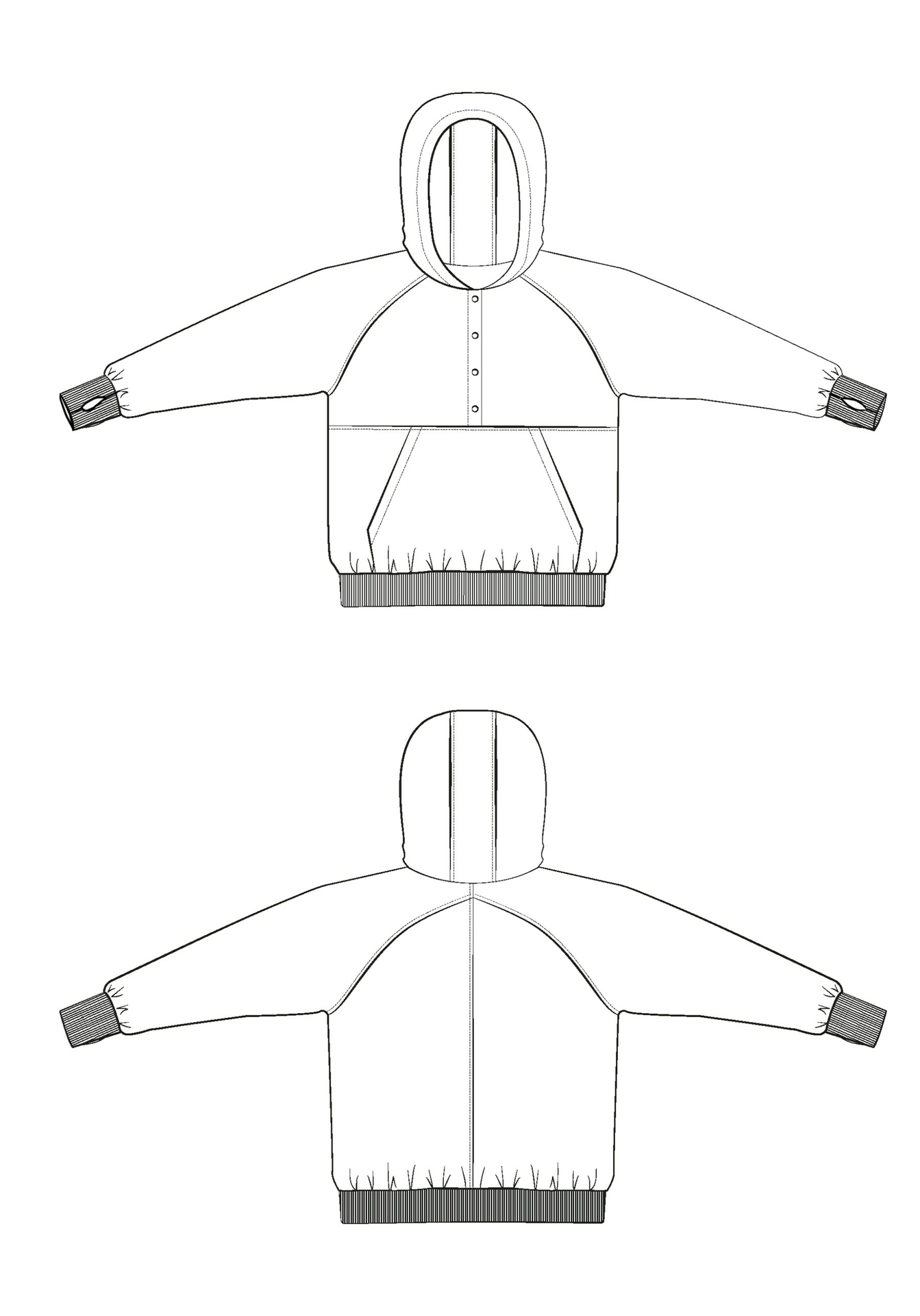 Choice of fabrics : sweatshirt fabrics such as jersey, French terry, sweater knit, as well as ribbed cuffs.