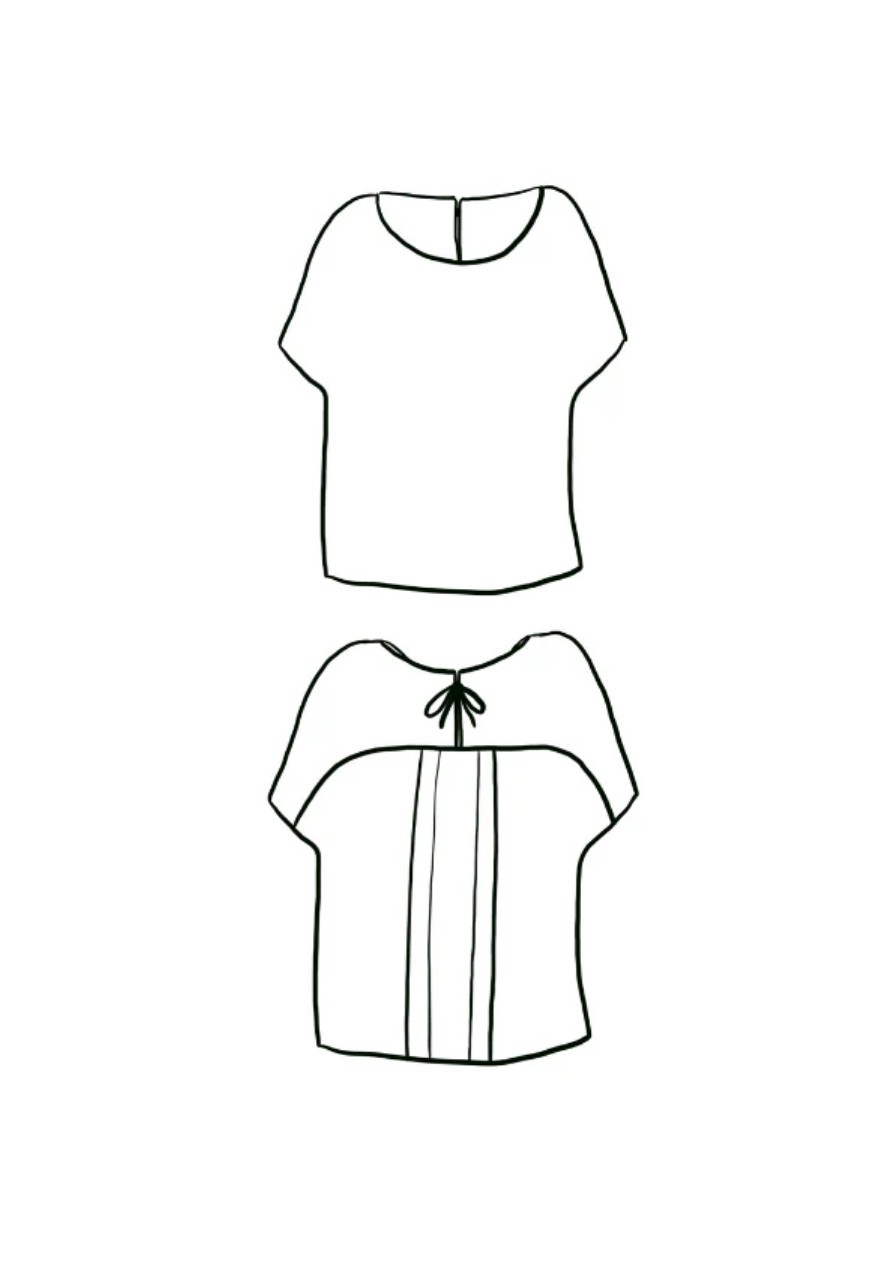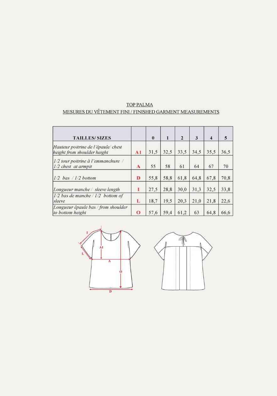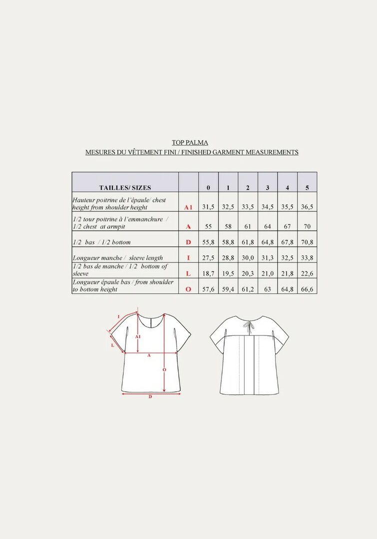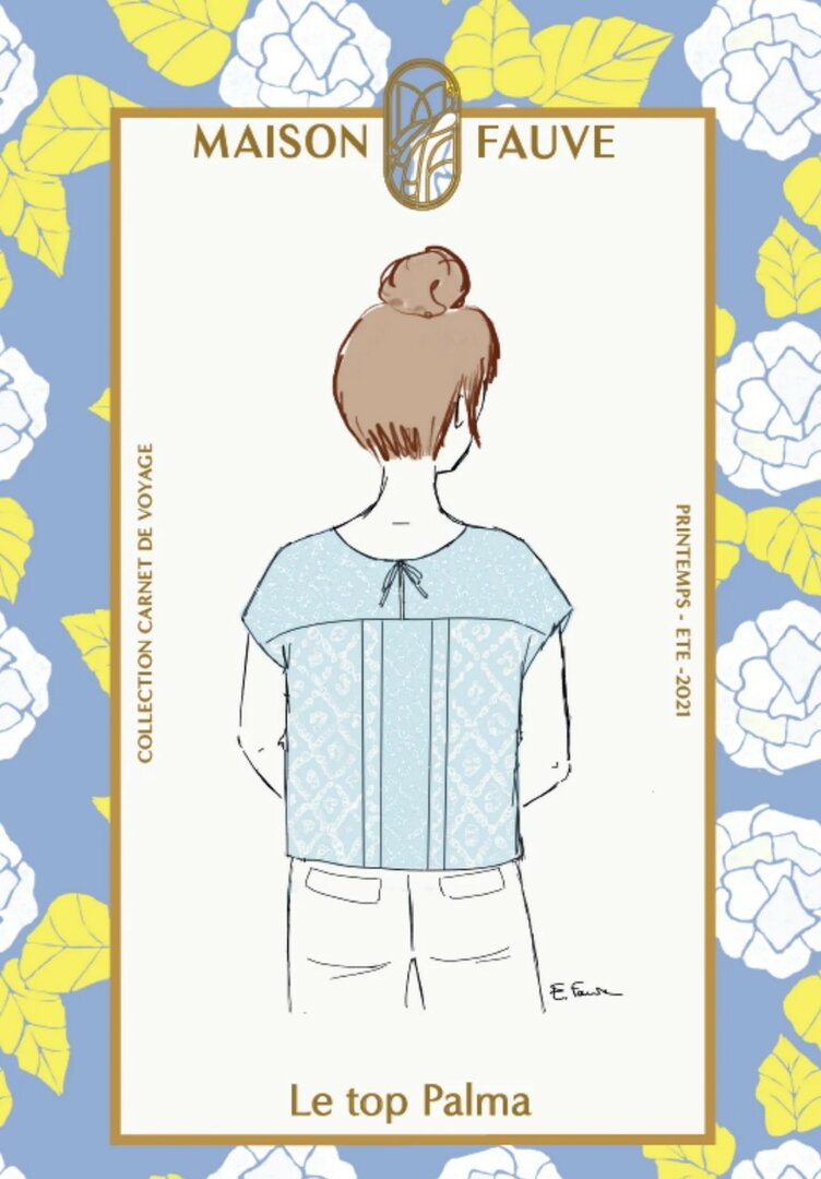 PALMA is the beginner's sewing pattern for your summer wardrobe! Simple, with the Maison Fauve touch: the pretty pleated back with yoke, closed by pretty knotted ties. Its loose fit and open neckline make it ultra comfortable, as beautiful worn as a blouse as tucked into pants.