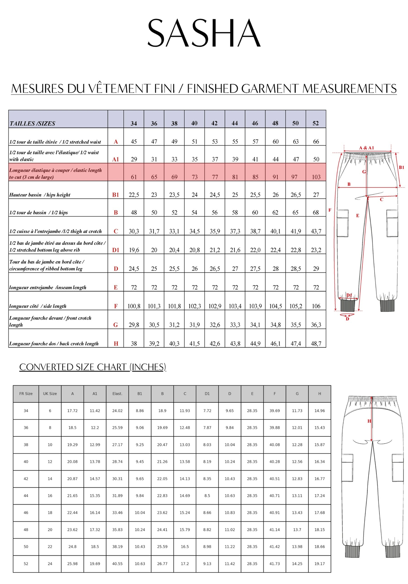 SASHA is a pair of jogger trousers that combine comfort with neat finishes. The elasticated waistband is built into the front pieces to avoid unwanted bulk, while the back is shaped with a yoke to give a flattering fit. The trousers feature Italian pockets, with the option to add flap patch pockets on the sides. The leg is straight - neither too slim nor too loose - and the hem can be finished to suit your preference: with ribbing, at ankle length, or extended over the instep.