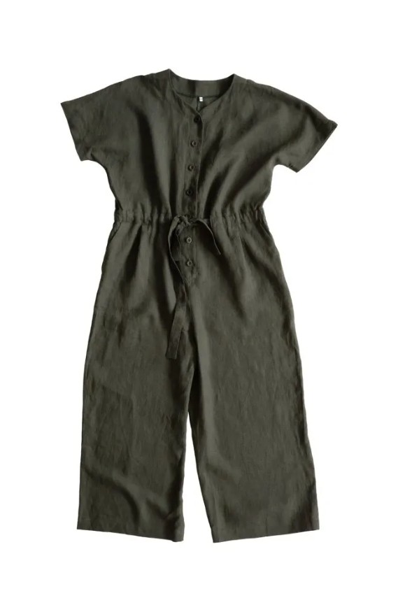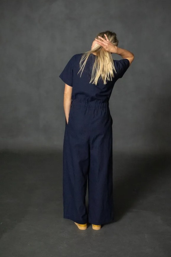 Practical and hardworking, Cassidy is an unstructured jumpsuit featuring an elasticated back and front tie. Long or short sleeves and a wide leg with side pockets.