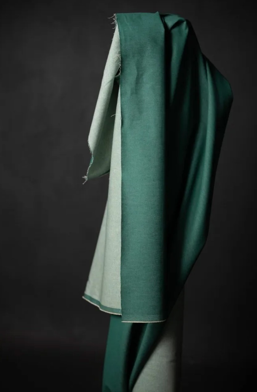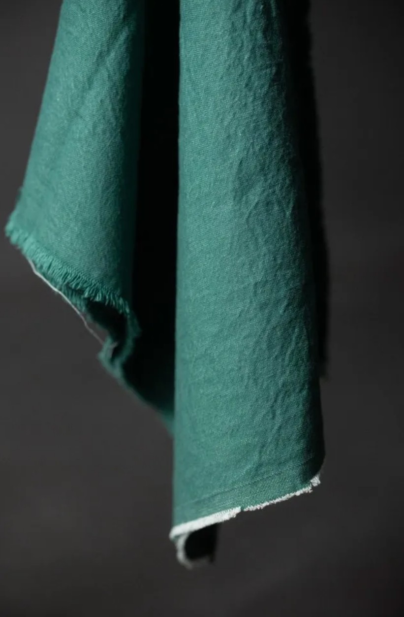 Een zeer bijzondere denim in een fel smaragdgroen, een ideale dikte voor jeans en jasjes.
