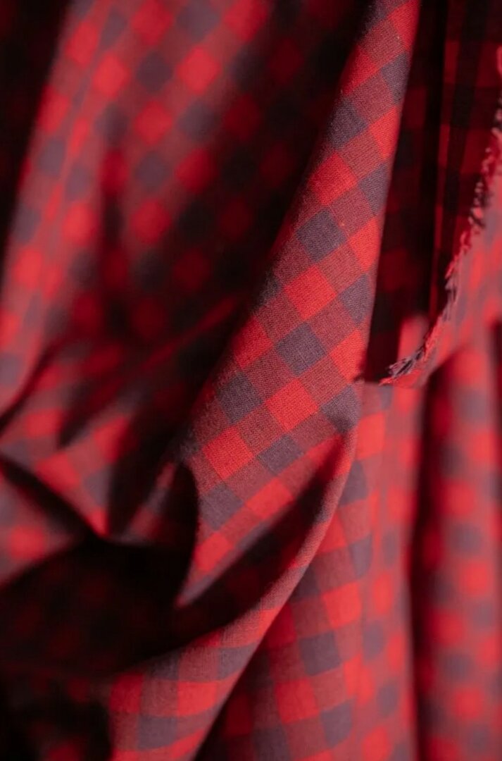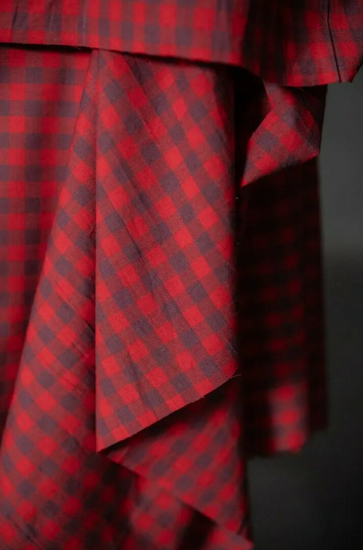 Een scarlet red en grey/purple ruitje geschikt voor prachtige rokken, tops en blouses.