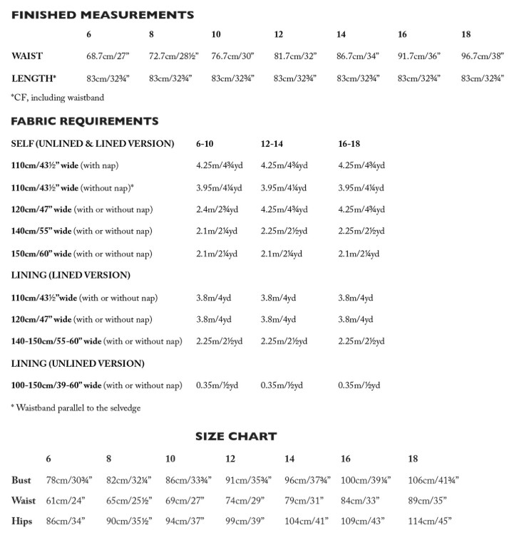 *Please note for some widths of cloths and sizes you will have to seam your fabric, but this is indicated on the pattern.