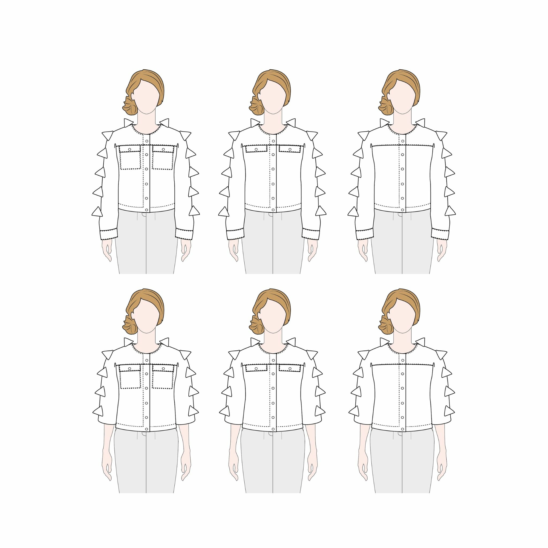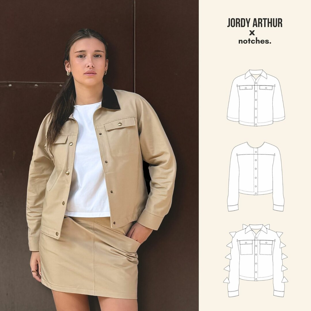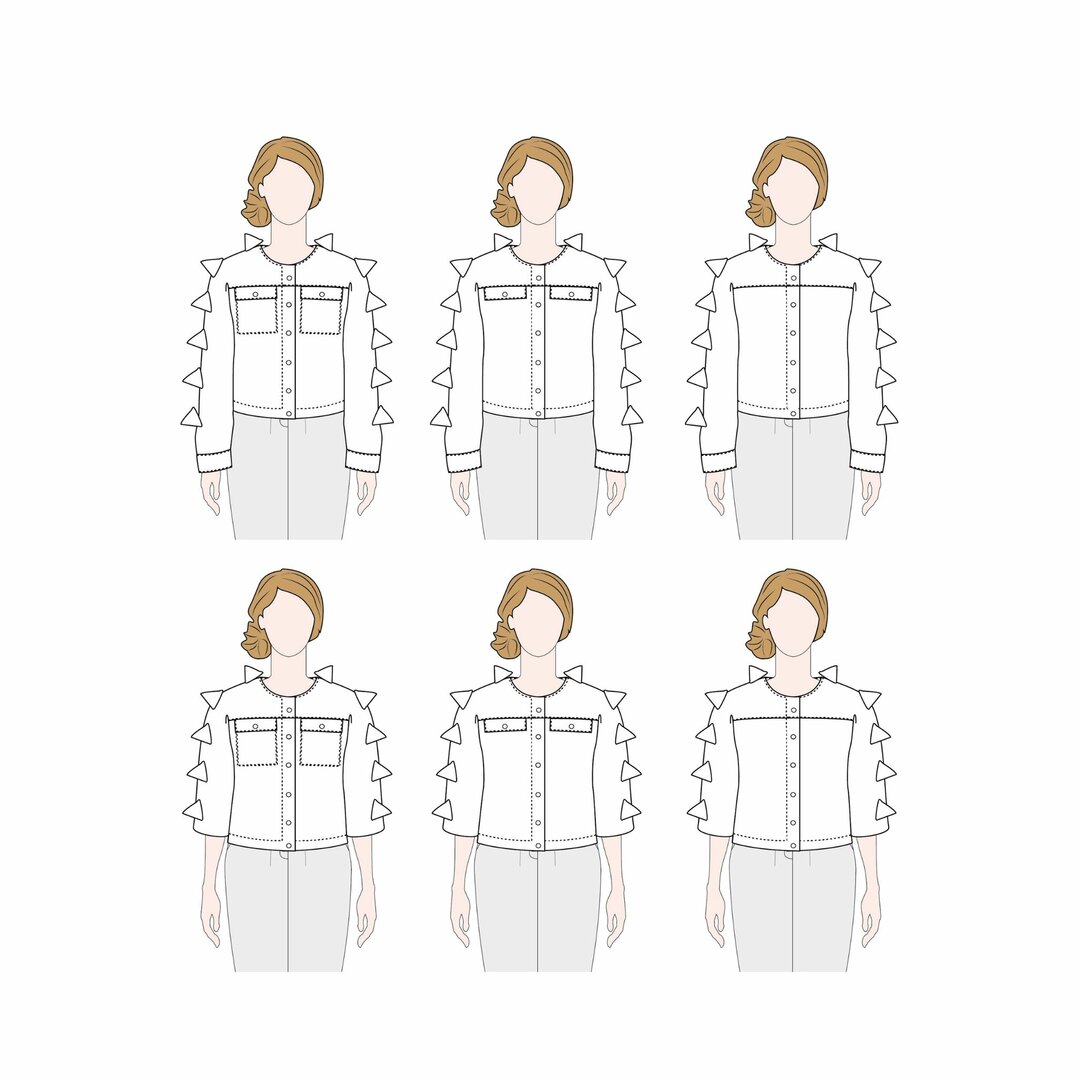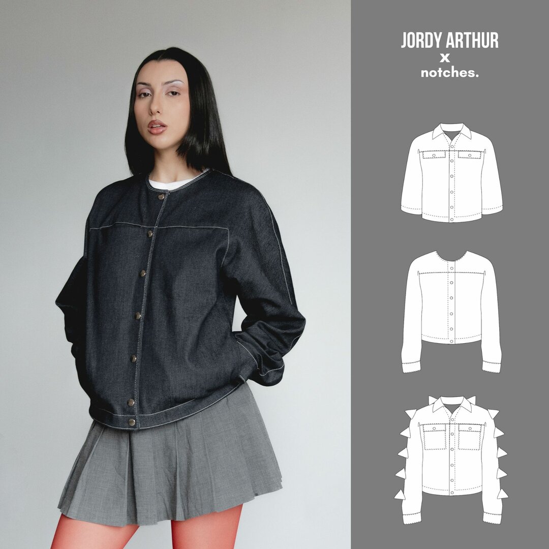We sloegen de handen in elkaar met de Belgische modeontwerper Jordy Arthur om een echt statement jacket te creëren, met opvallende details zoals verwijderbare spikes en een opvallend raglanmouw die met een geïncrusteerde hoek overloopt in het plat stuk. Dankzij de eindeloze afwerkingsmogelijkheden is Jenna jouw favoriete jas om te combineren en je persoonlijke stijl te laten spreken. Dit patroon is gegradeerd in vrouwenmaten.