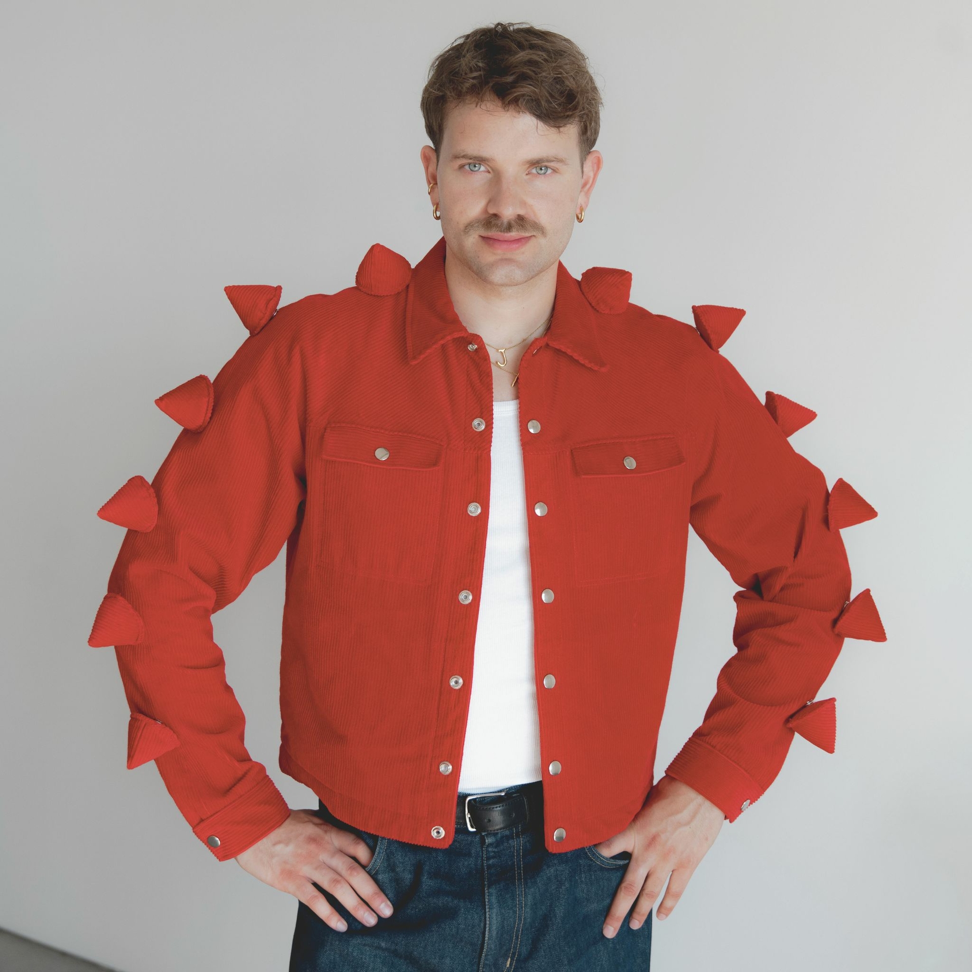 We sloegen de handen in elkaar met de Belgische modeontwerper Jordy Arthur om een echt statement jacket te creëren, met opvallende details zoals verwijderbare spikes en een opvallend raglanmouw.