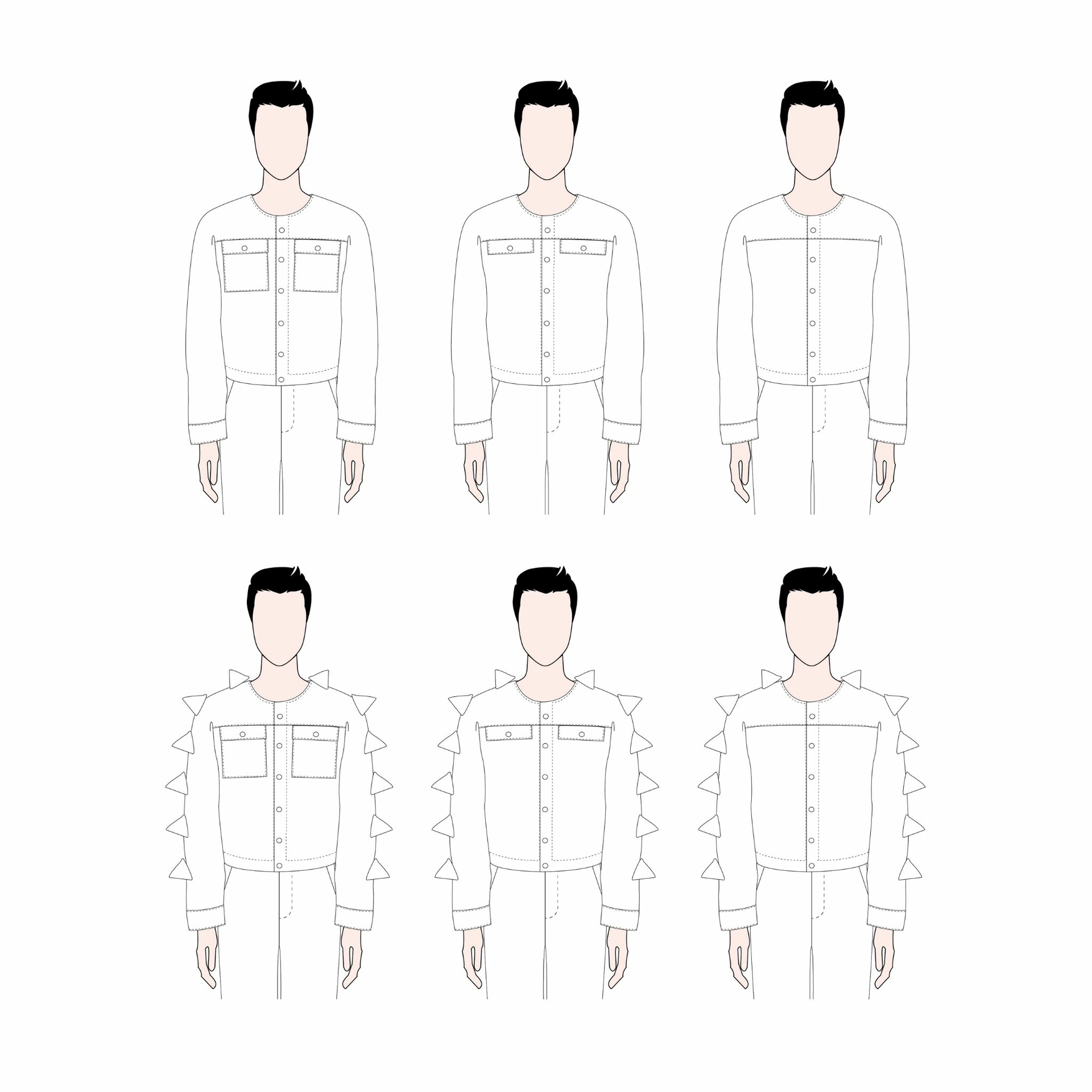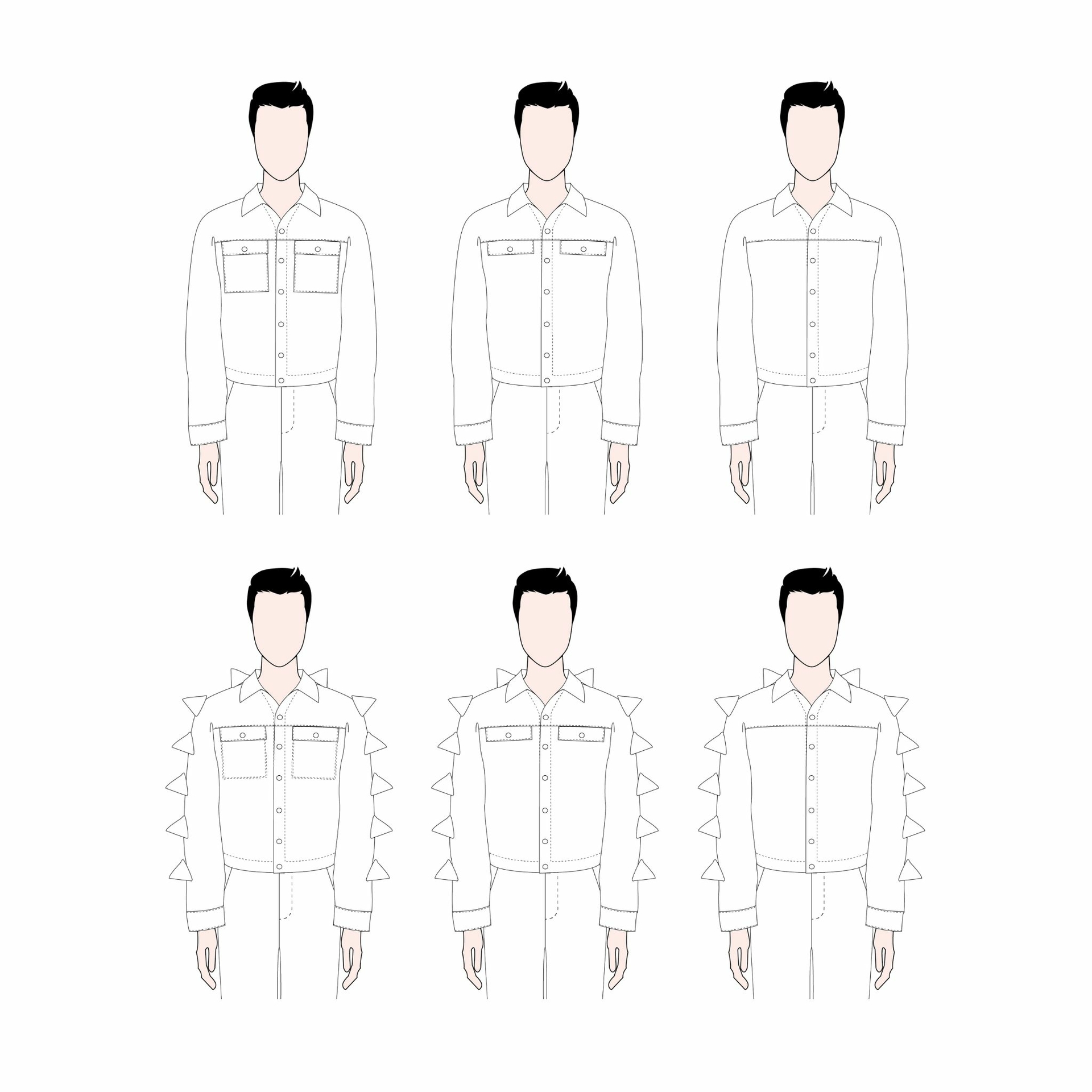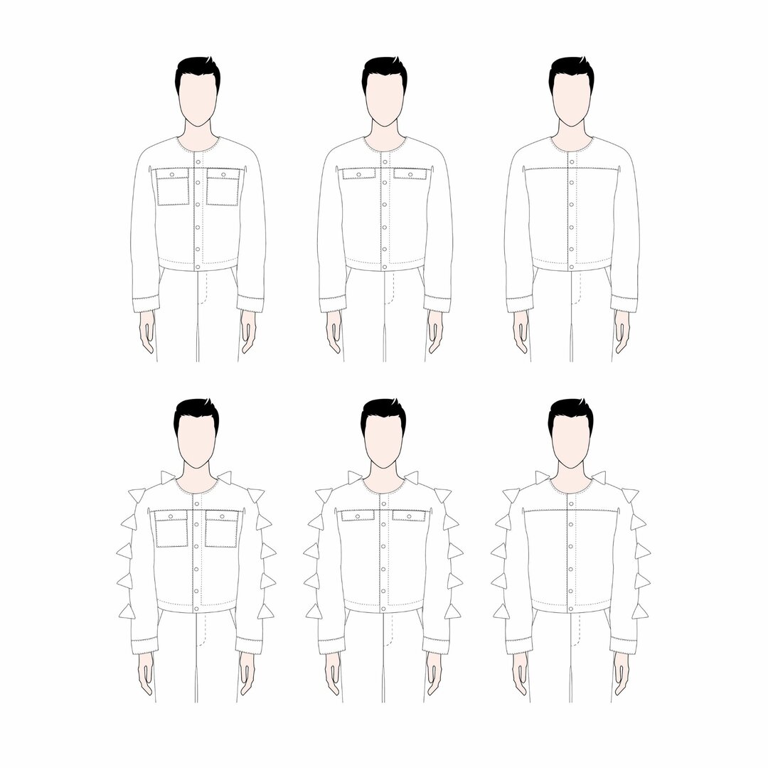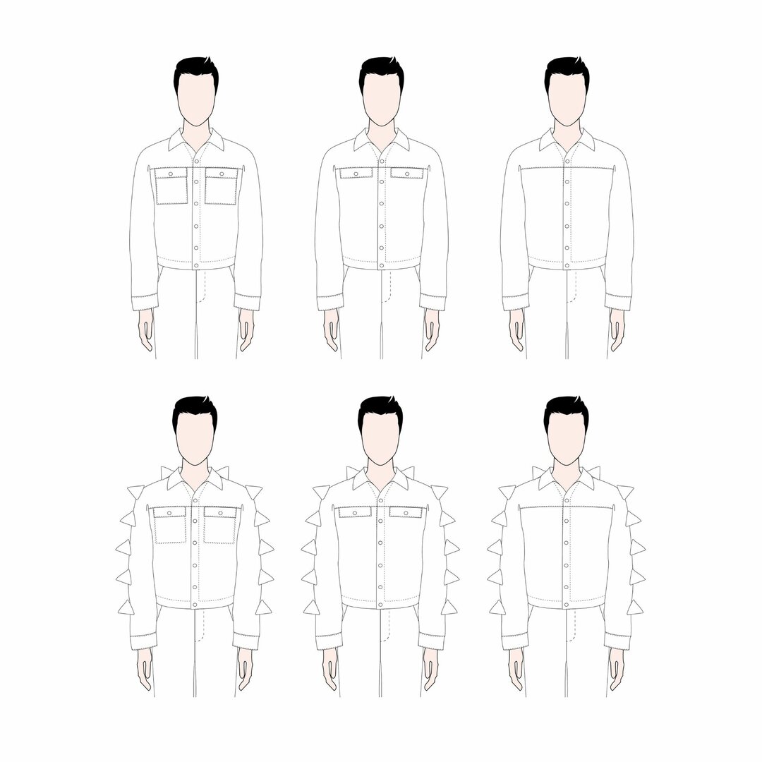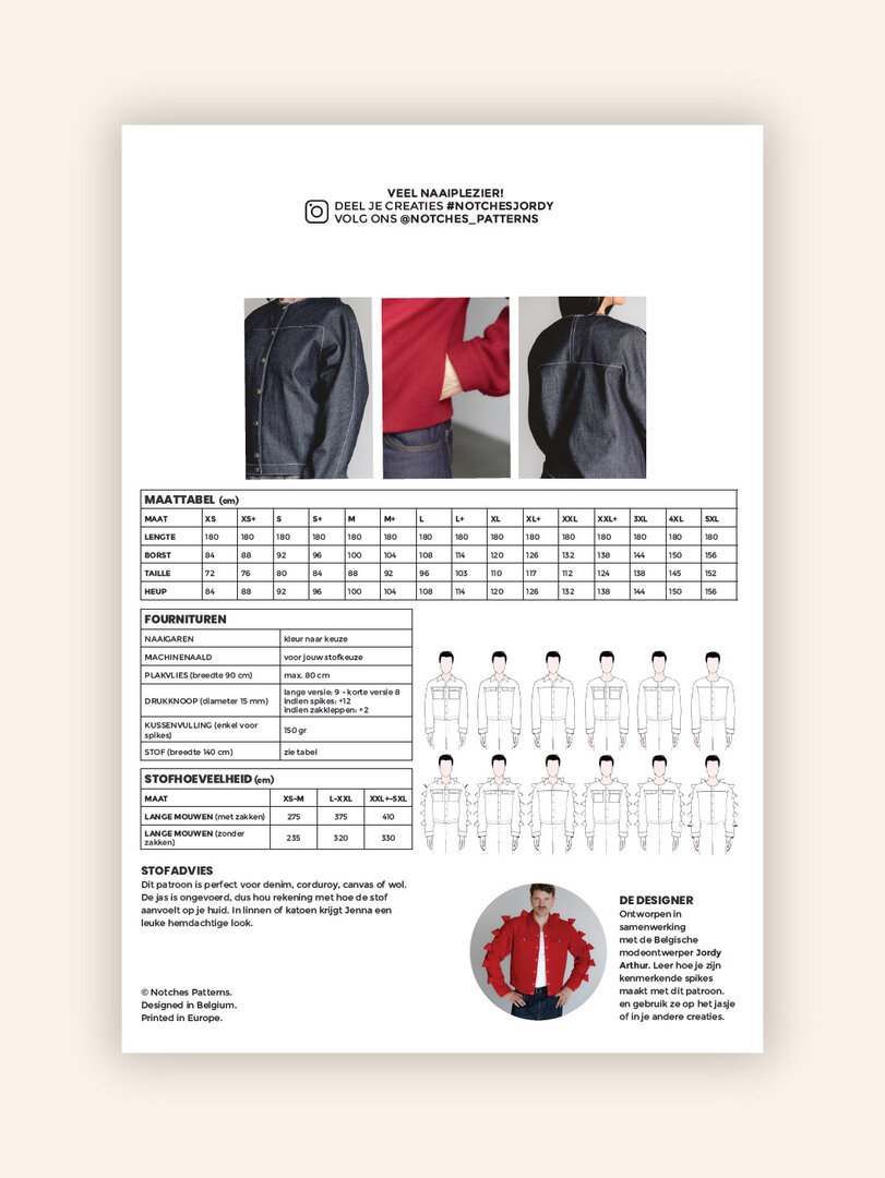 We sloegen de handen in elkaar met de Belgische modeontwerper Jordy Arthur om een echt statement jacket te creëren, met opvallende details zoals verwijderbare spikes en een opvallend raglanmouw die met een geïncrusteerde hoek overloopt in het plat stuk. Dankzij de eindeloze afwerkingsmogelijkheden is Jordy jouw favoriete jas om te combineren en je persoonlijke stijl te laten spreken. Dit patroon is gegradeerd in mannenmaten.