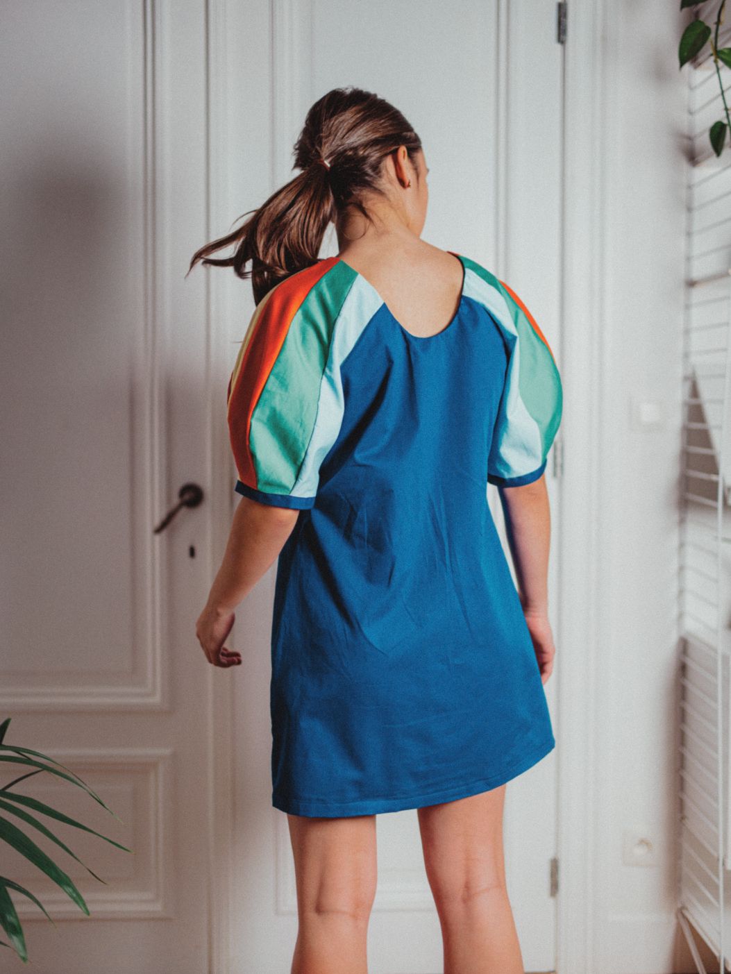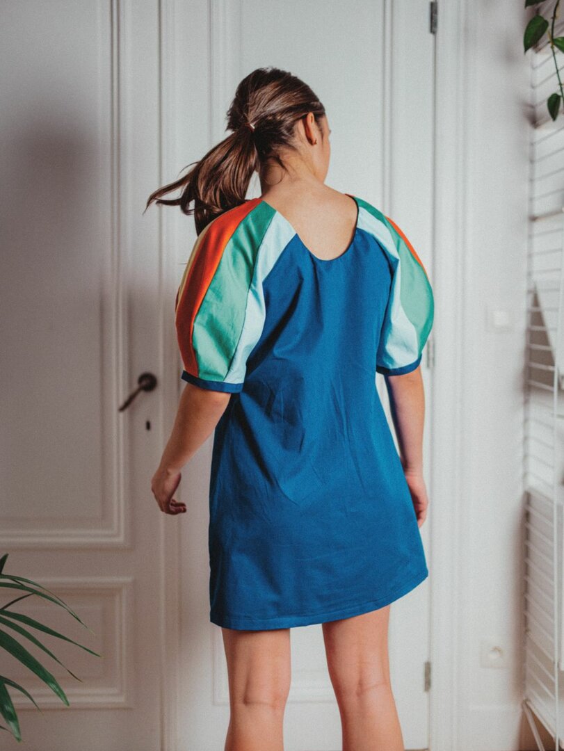 Het patroon bevat twee zoomlengtes, zodat je Odell als top of als korte jurk kunt maken. Kies voor stevige stoffen zoals katoen, linnen, canvas of denim om de mouwen echt te laten spreken. En als je graag stoffen combineert, is dit de perfecte manier om stofrestjes op te maken—zorg er wel voor dat de verschillende op elkaar gelijken van gewicht en structuur.