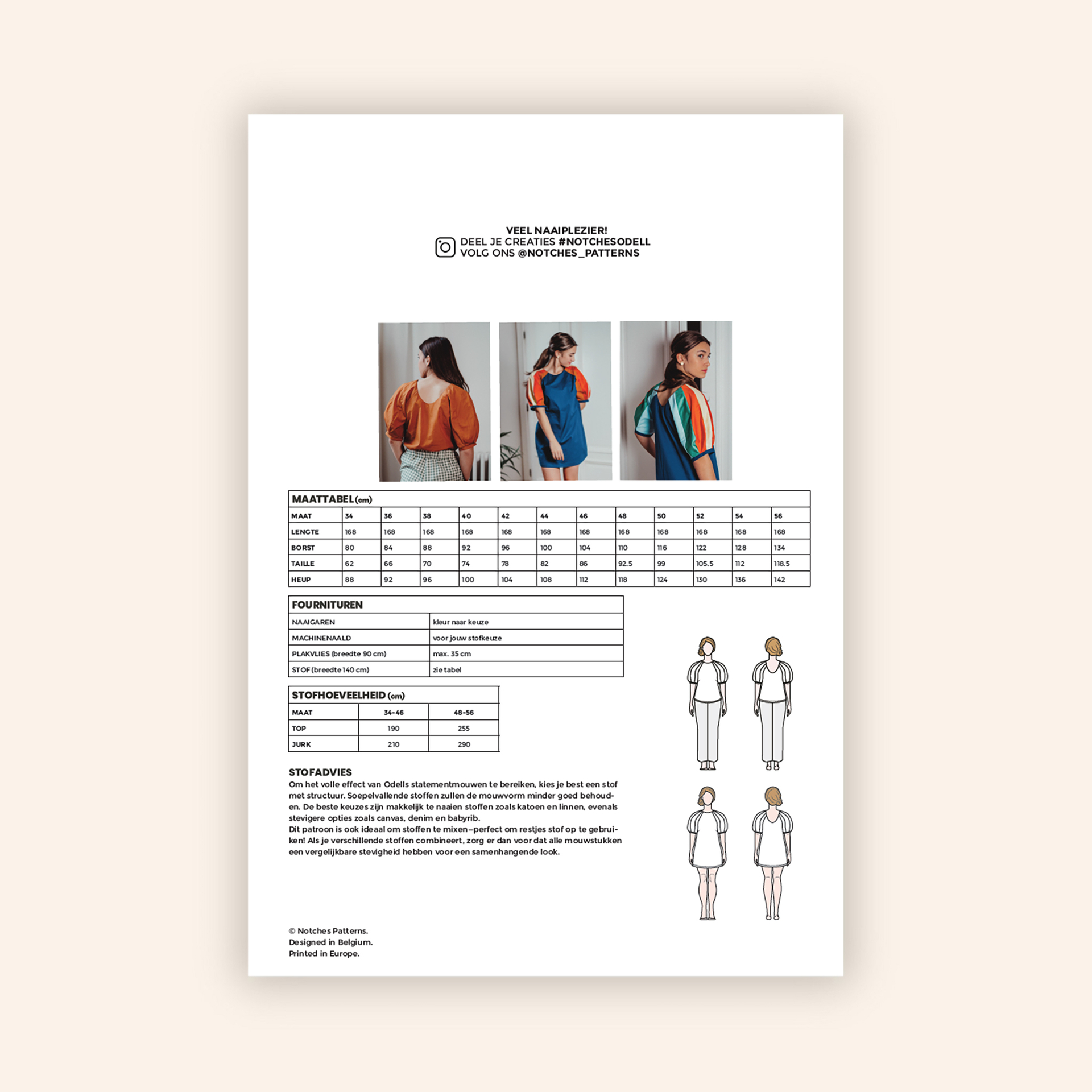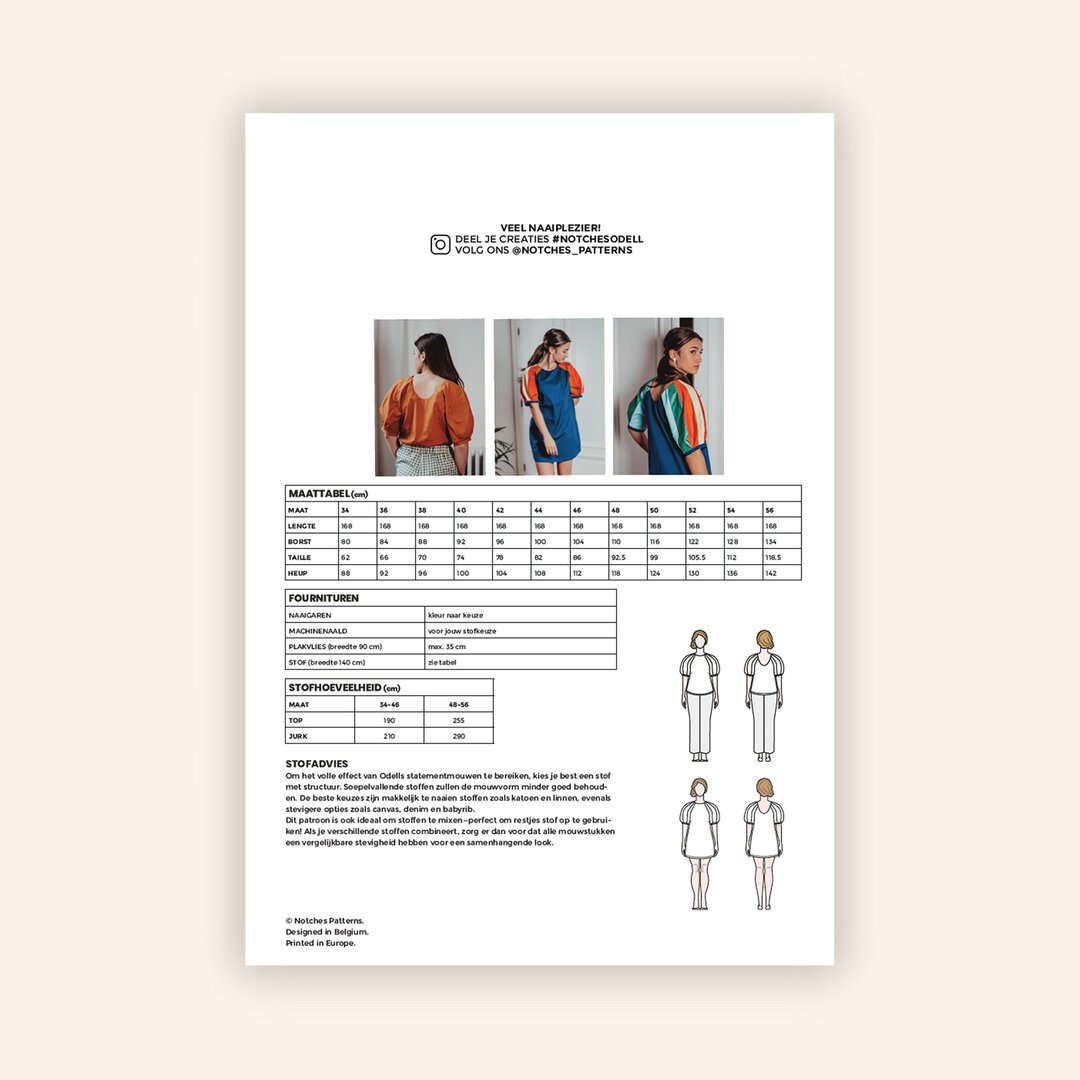 Dit patroon is ook ideaal om stoffen te mixen—perfect om restjes stof op te gebruiken! Als je verschillende stoffen combineert, zorg er dan voor dat alle mouwstukken een vergelijkbare stevigheid hebben voor een samenhangende look.