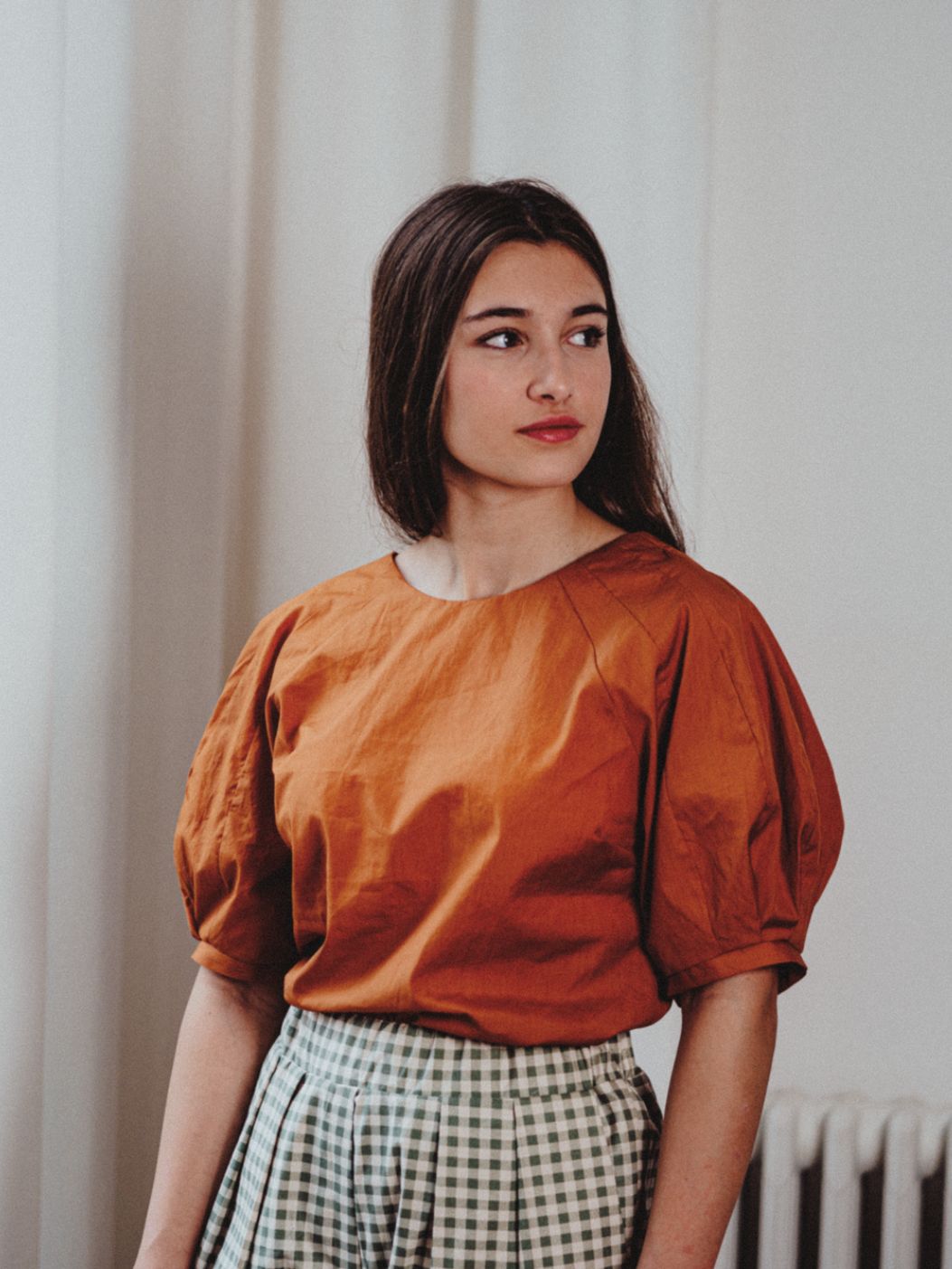 Odell is een speelse maar beginnersvriendelijke top of korte jurk met de gemakkelijkste pofmouwen die je ooit zult naaien—geen rimpels nodig, alleen slim gevormde naden.