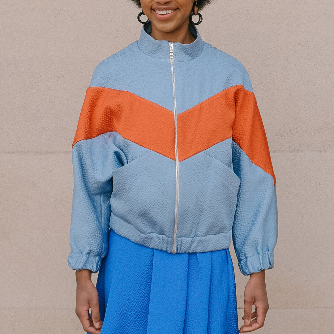 Rava is geïnspireerd op de typische felgekleurde trainingsjasjes uit de jaren 80. De belangrijkste kenmerken van het patroon zijn de diagonale naden, waardoor je kunt spelen met kleurblokken.