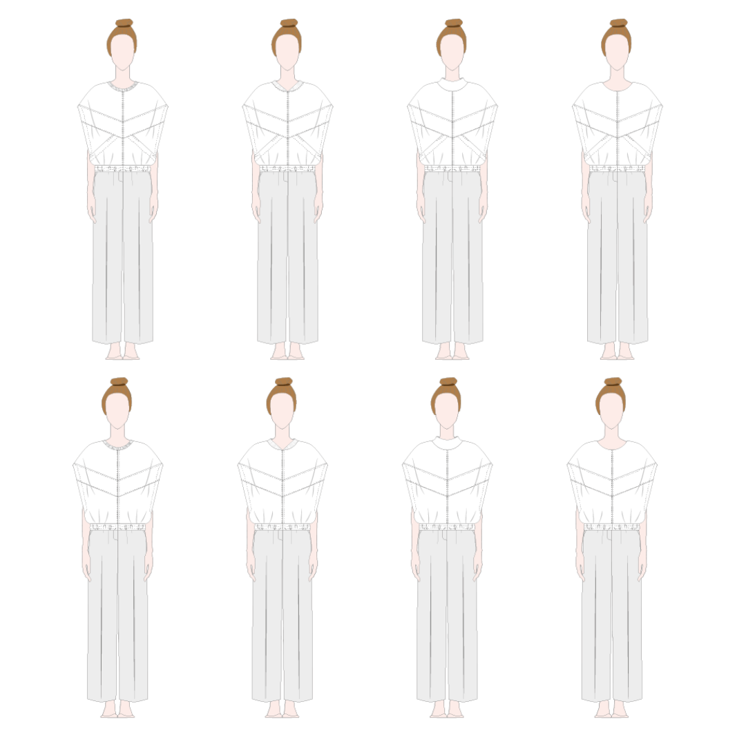 - Meerdere ontwerpopties per patroon met aparte patroondelen en instructies voor alle opties, geen gokwerk. Je kunt verschillende kledingstukken uit één patroon maken en altijd een look vinden die bij je past.