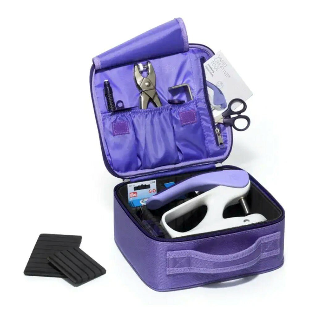 Deze mooie VARIO naaikoffer van Prym is ideaal voor het opbergen van al je naaibenodigdheden. In de deksel zitten 3 steekvakken, die af te dekken zijn met een flap met klittenbandsluiting. Deze vakken zijn ideaal voor het opbergen van kleine accessoires. Het smalle ritsvak ernaast biedt extra praktische opbergruimte. De vakverdelers in de koffer, gemaakt van MDF, zijn vrij aan te passen aan je eigen behoeftes. De Prym Vario Creative tool past perfect in deze mooie paarse koffer en biedt ook nog genoeg ruimte voor accessoires, zoals gereedschapssets, nestelringen en drukknopen. Door de handgreep is de koffer handig mee te nemen. De naaikoffer is 26 x 24 x 11cm groot en wordt geleverd per 1 stuk, zonder inhoud.