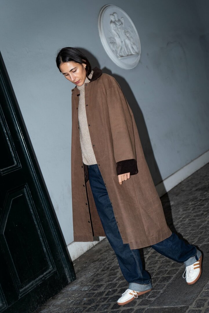 The pattern comes with all sizes from XXS-XXL. The most important measurement to consider for this jacket is the bust measurement. The model in the photos are approx. 176 cm tall and is wearing a size S.