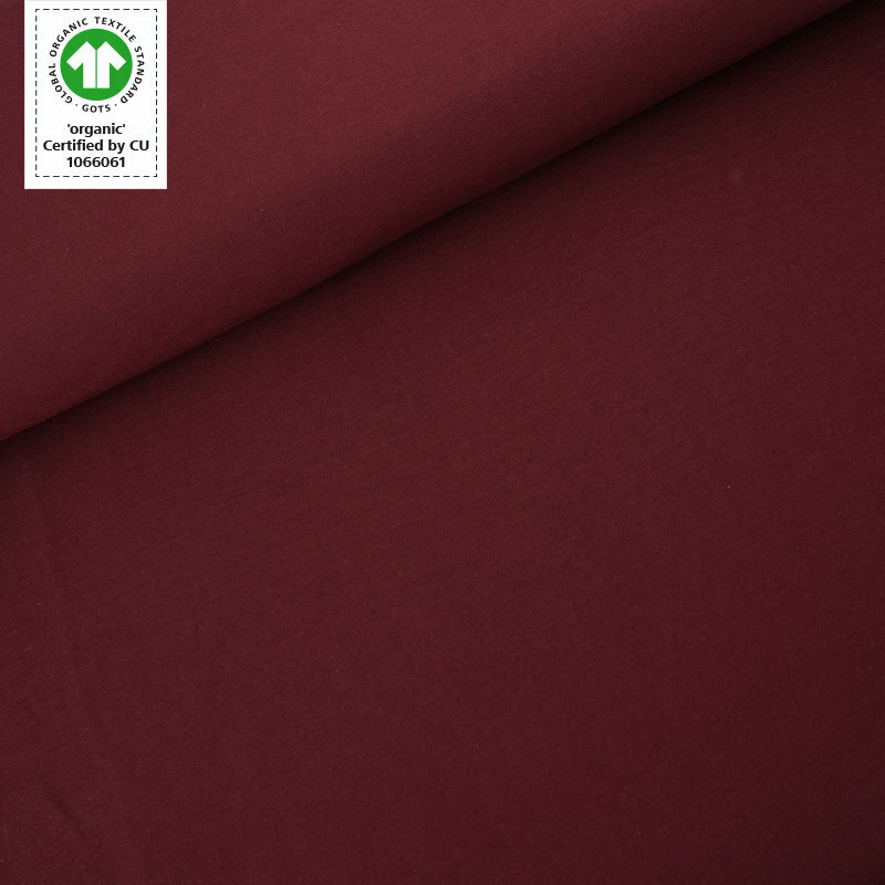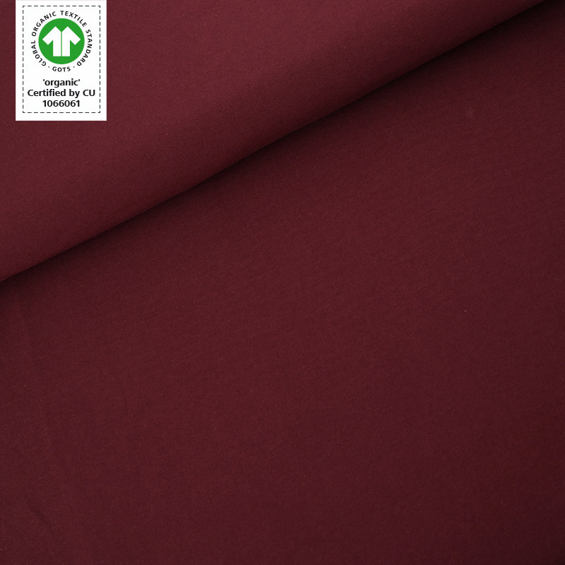 Onze biologische zachte sweat is een middelzware geborstelde sweat gemaakt van 100% katoen. Deze bordeaux kleurige sweat is geschikt voor truien, hoodies.