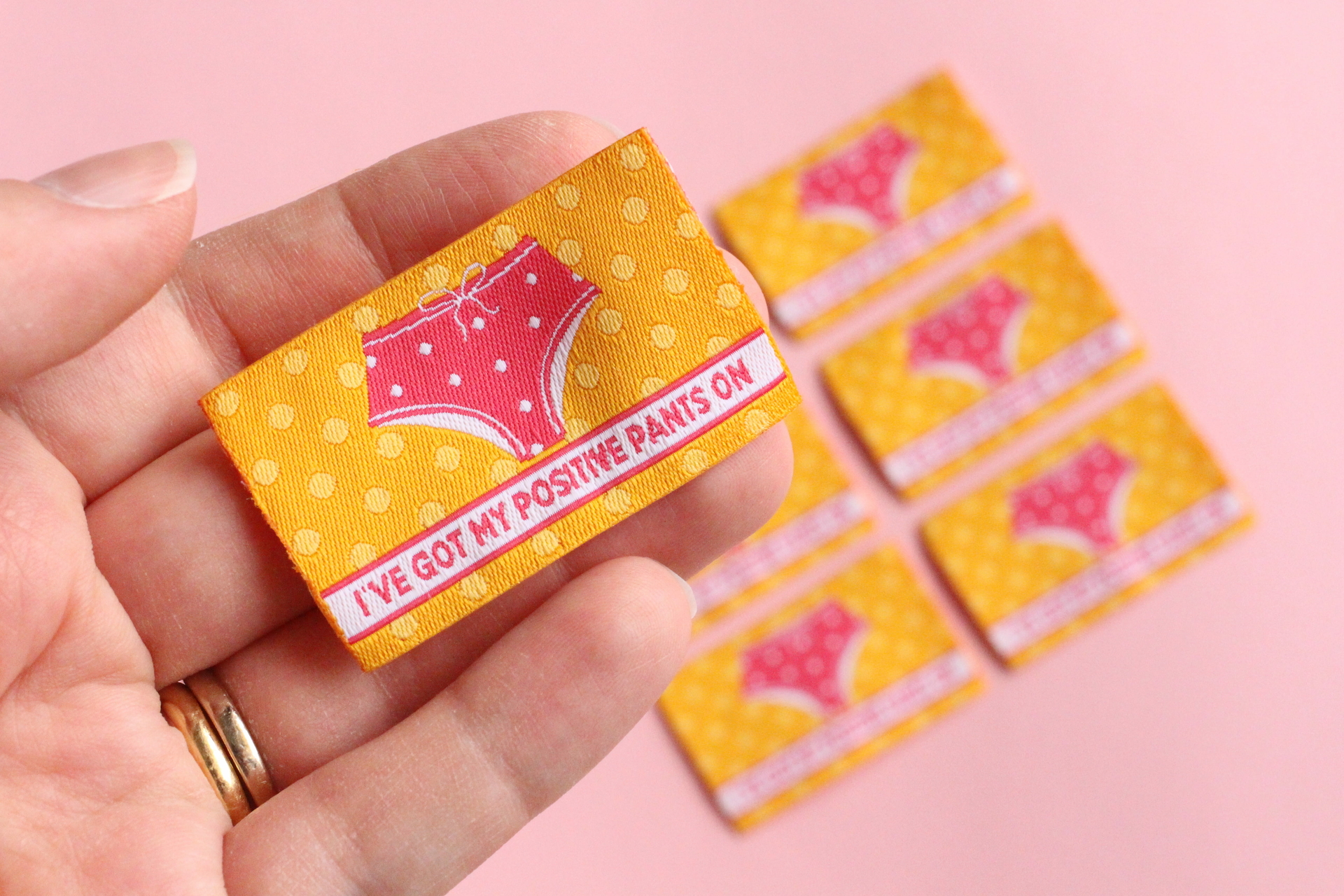 Geef je handgemaakte projecten een vrolijke finishing touch met deze schattige ‘positive pants’ geweven naailabels. Deze hoogwaardige geweven kledinglabels zijn perfect om in handgemaakte kledingstukken, naaiprojecten, haakwerk, breiwerk, accessoires en handgemaakte cadeaus te stikken.