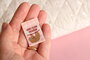 Leuk slakkenontwerp op een lichtroze en crèmekleurige gingham (ruitjes) achtergrond met de tekst “Very Slow Fashion” aan één zijde