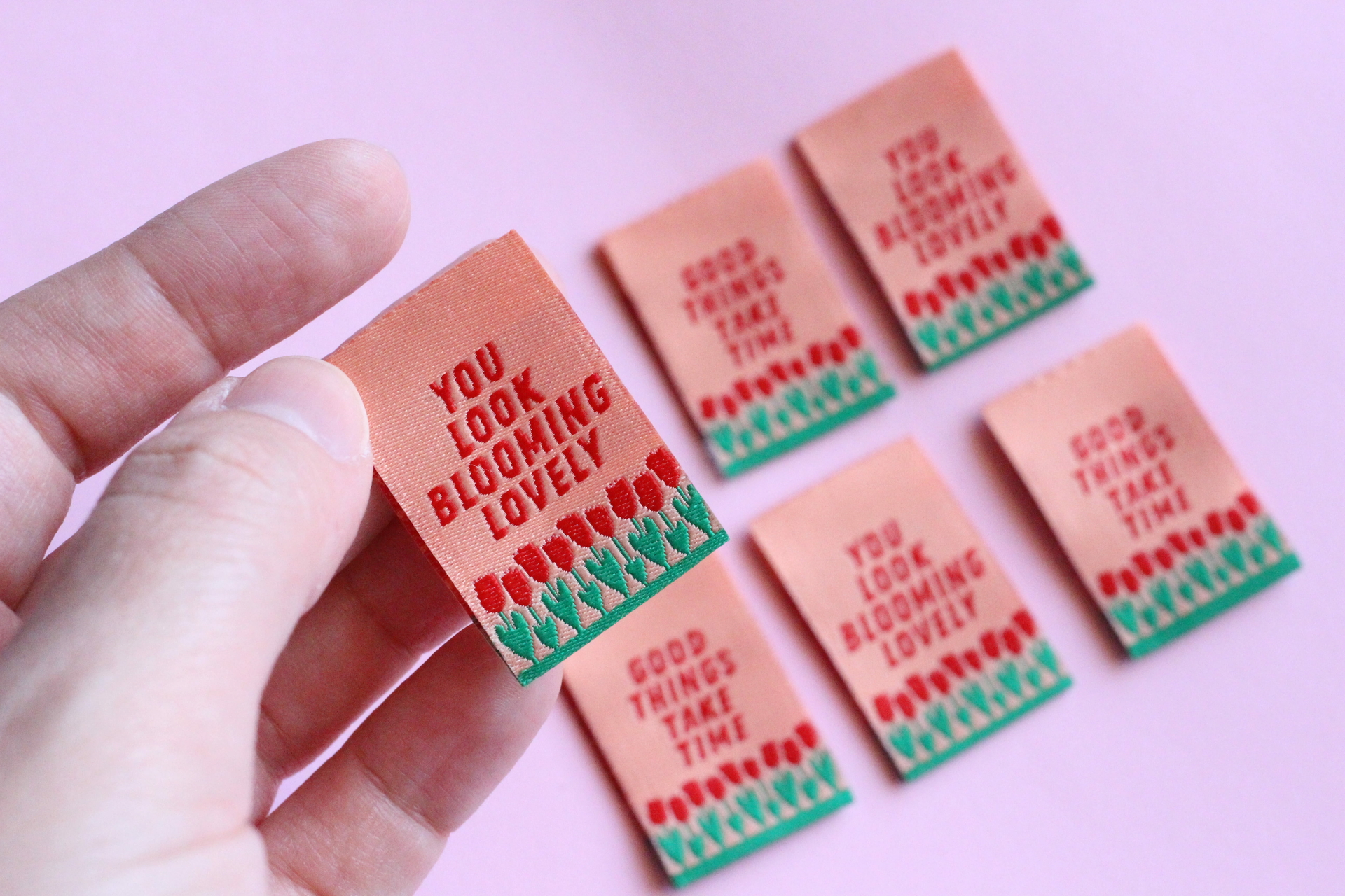 Maak je handgemaakte projecten helemaal af met deze tulpen geweven naailabels. Deze hoogwaardige geweven kledinglabels zijn perfect om in handgemaakte kledingstukken, naaiprojecten, haakwerk, breiwerk, accessoires en handgemaakte cadeaus te stikken.