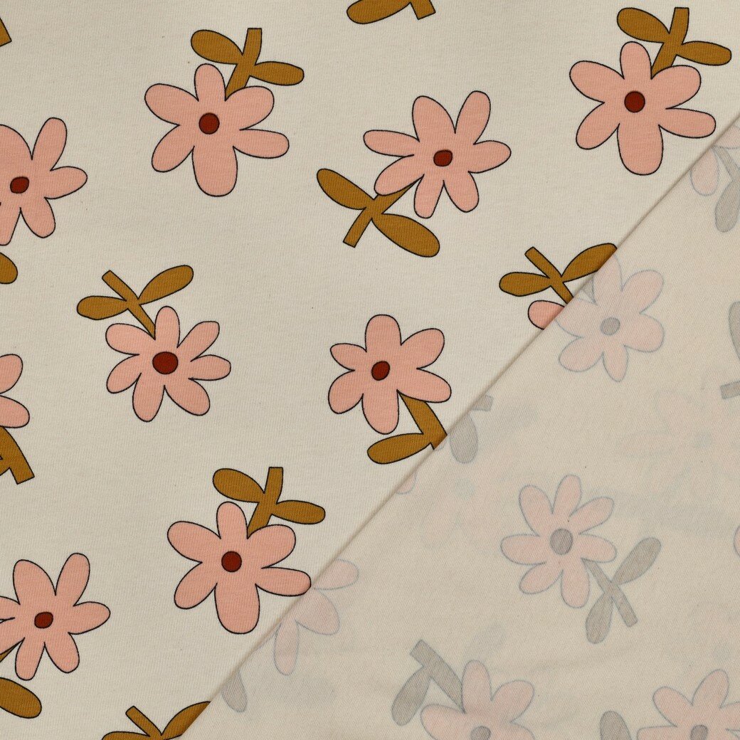 Soepele zachte BIO jersey met bloemen geschikt voor kinderkleding.
