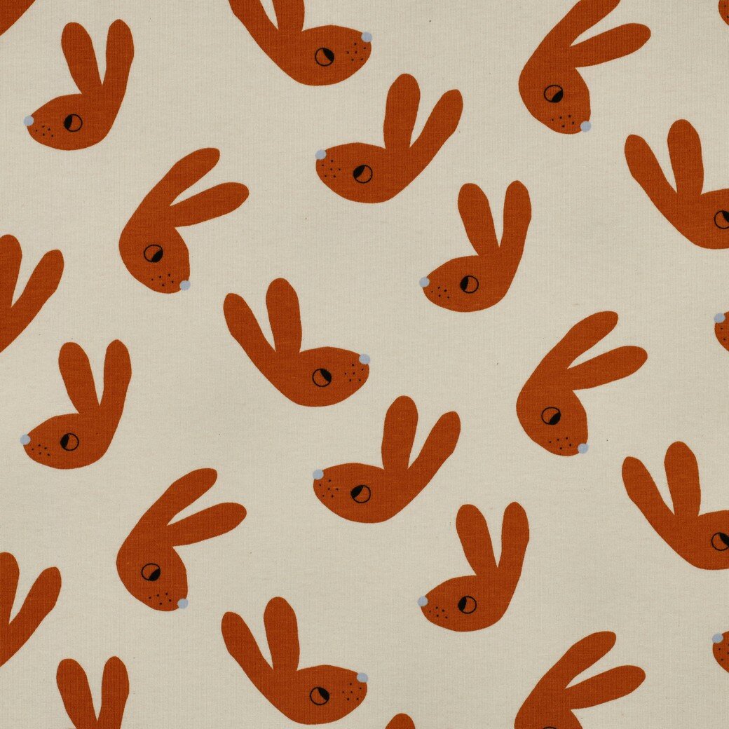 Soepele zachte BIO jersey met konijnen geschikt voor kinderkleding.