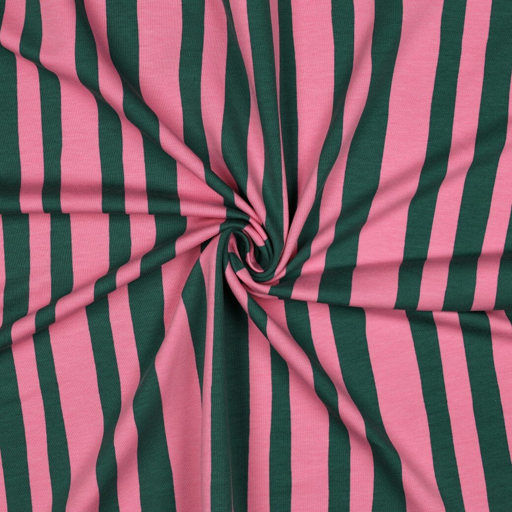 VERHEES X JENNIFER BOURON - Stripes Groen/Roze - FRENCH TERRY (GOTS)