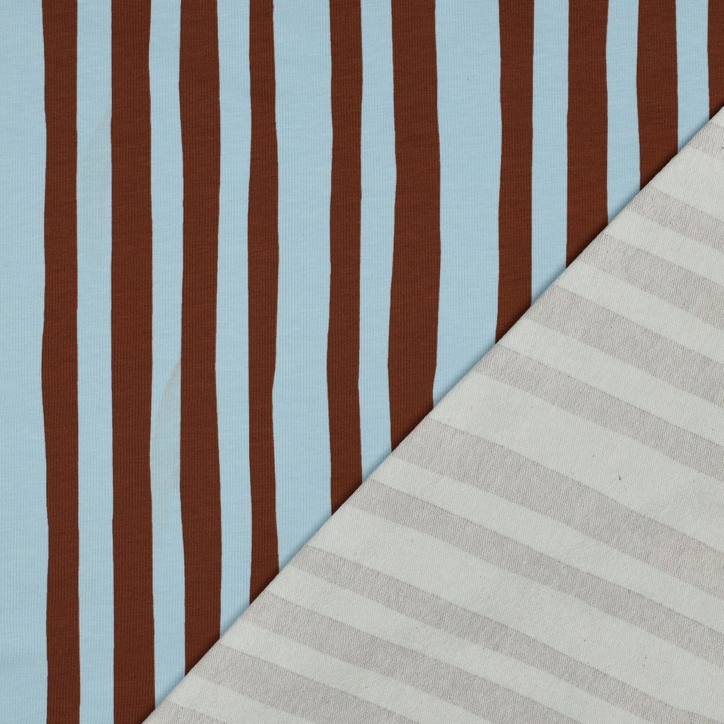 VERHEES X JENNIFER BOURON - Stripes Lichtblauw/Bruin - FRENCH TERRY (GOTS)