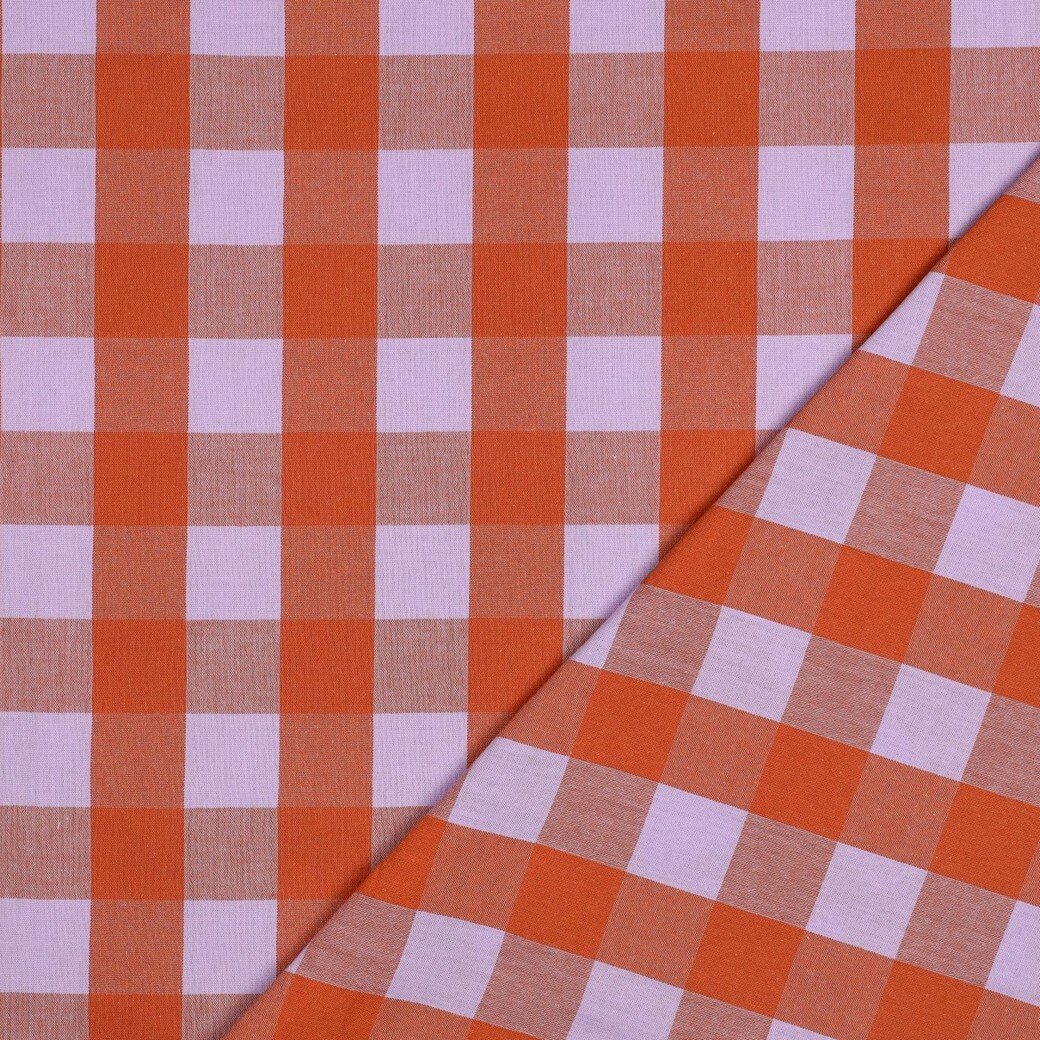 Verhees - Yarn Dyed Check Lavendel/Oranje - KATOEN