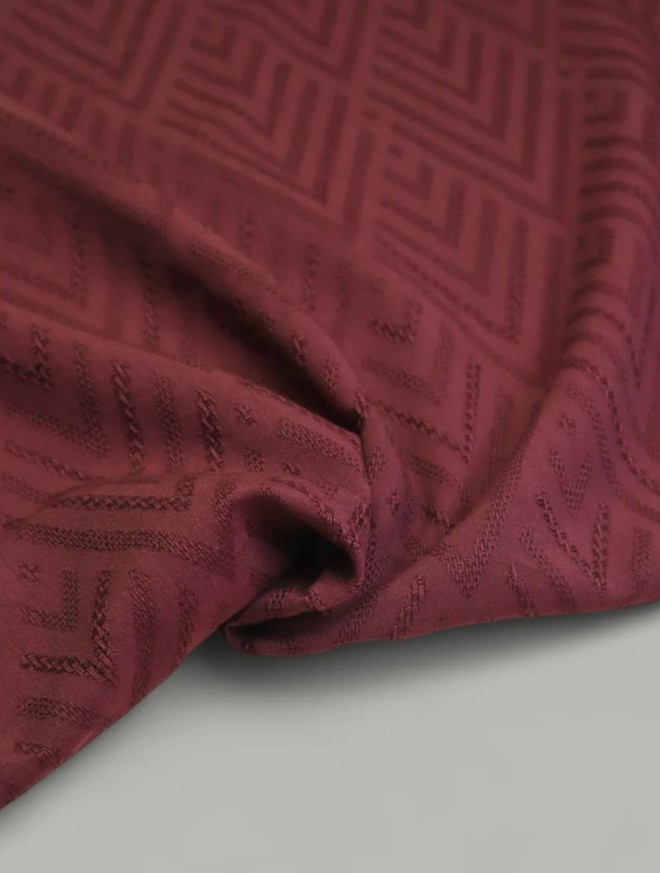 The Alta Jacquard is a high quality fabric, made in a blend of soft ECOVERO™ Viscose and cotton fibers that offers a soft, yet structured drape with a 'dry' touch and matte appearance, featuring a lovely geometric jacquard pattern woven in the surface.